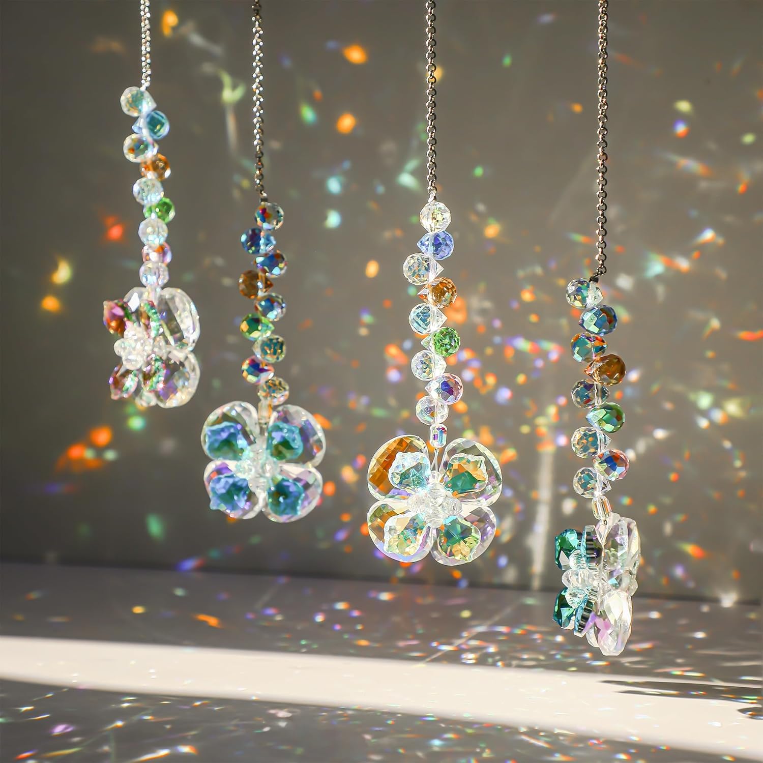 - Crystal Flower Suncatcher: Features 4pcs crystal four leaf clover in different colors, creating rainbow dots in sunlight