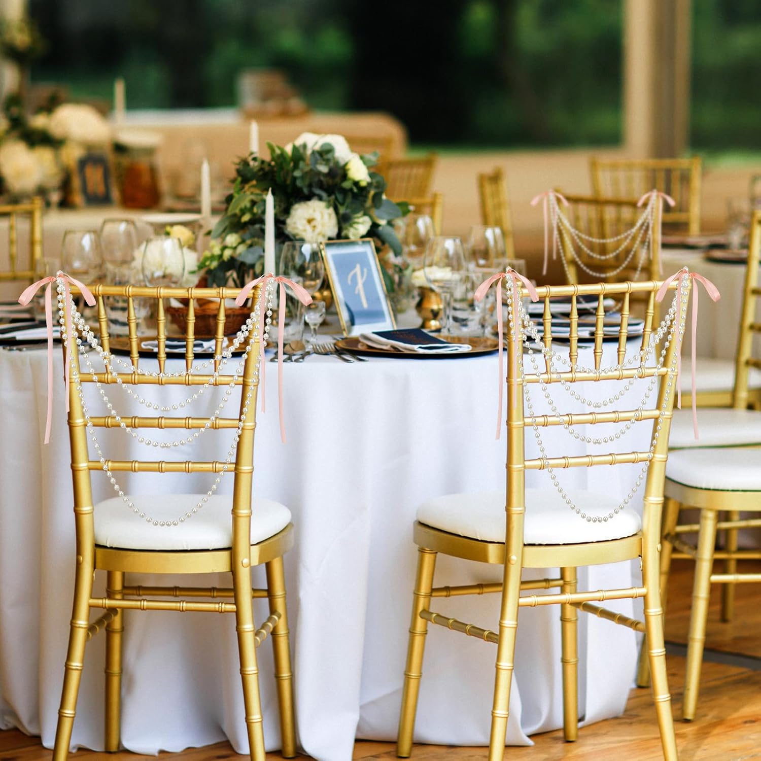 - Sufficient Quantity for Versatile Use: this package includes 16 wedding chair back garland sash with pre tied champagne pink bows, providing ample quantity for most applications; Whether you're decorating for a wedding, party, or special event, the large quantity allows for creative arrangements, such as pearl chair back garlands or beautiful centerpieces, ensuring your decor is visually appealing and eye catching