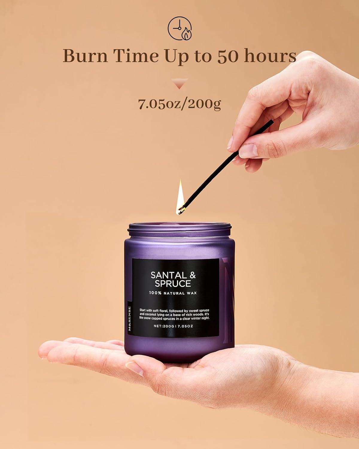 M&SENSE Sweet Spruce Scented Candle, Natural Soy Wax Winter Candle Cotton Wick 7.05oz Up to 50 Hours Tree Scented for Holiday Housewarming Gifts for Friends Family