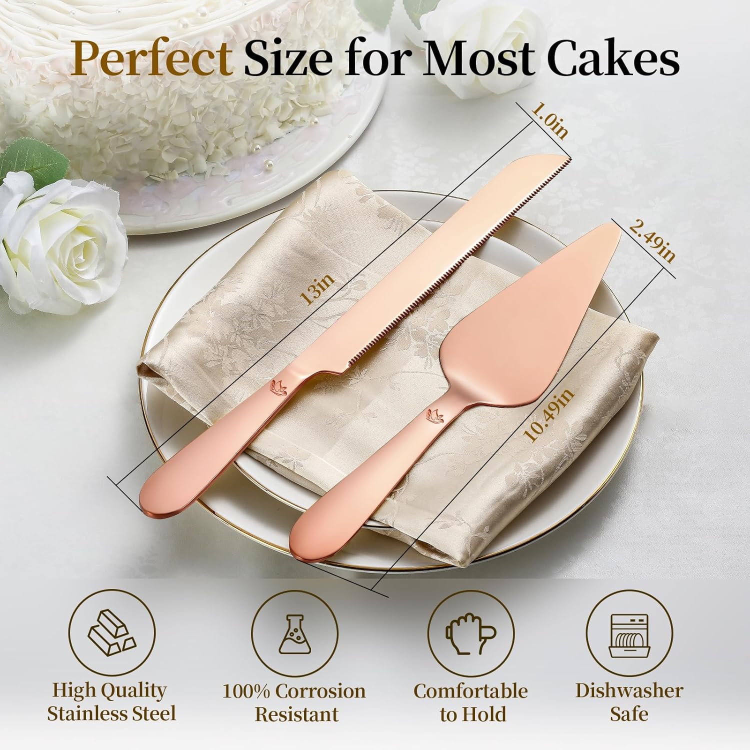 Cake Cutting Set for Wedding - Extended Cake Knife and Server Set Thickened Stainless Steel 13.0" Cake Cutter 10.49" Pie Spatula Great for Birthday Anniversary Christmas Gift 2 Pcs Rose Gold