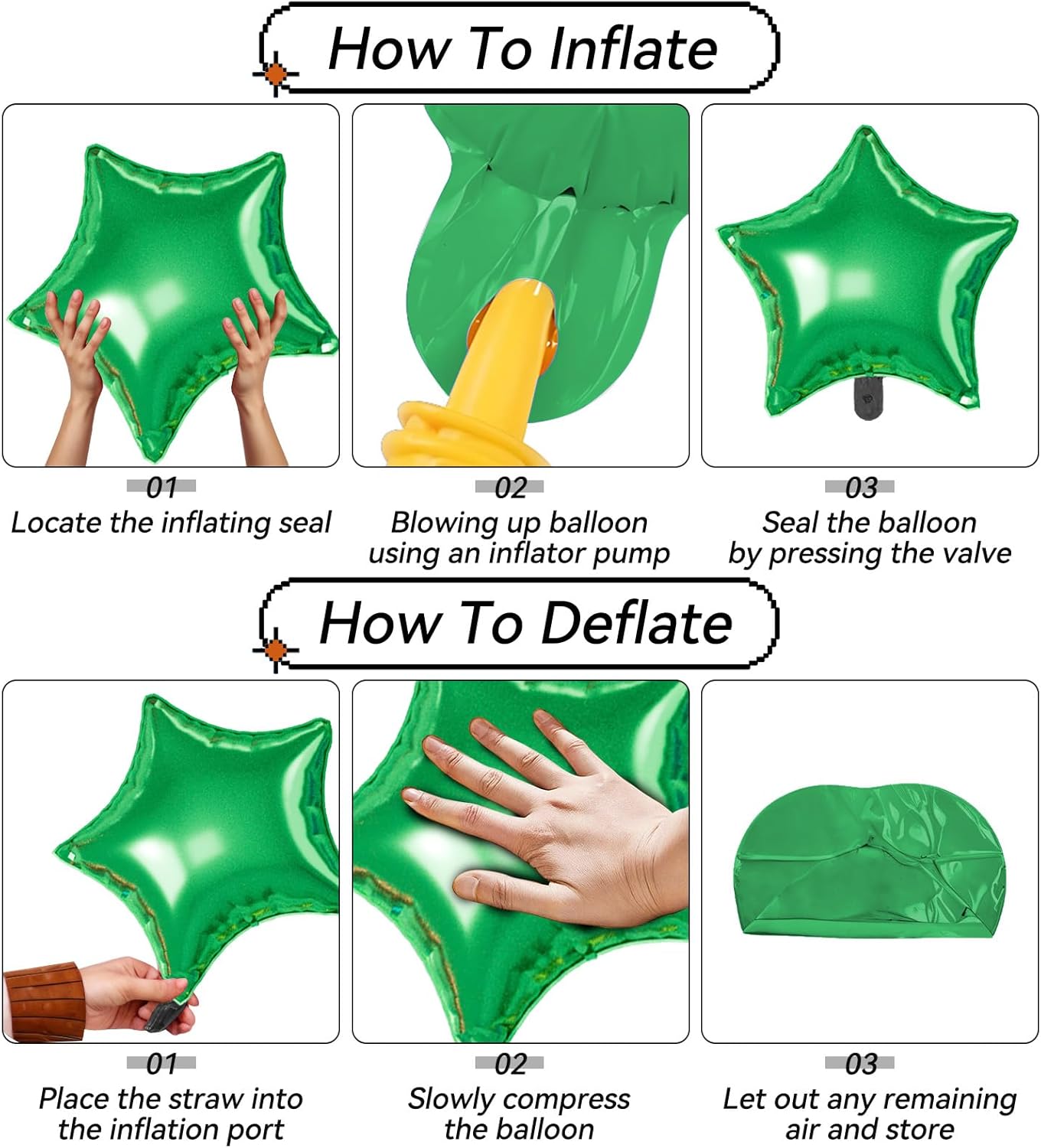 - ăEffortless SetupăInflate with helium or air using a pump and secure easily for polished decor. These Star Foil balloons are simple to assemble and reusable for multiple events, making decorating quick and effortless.