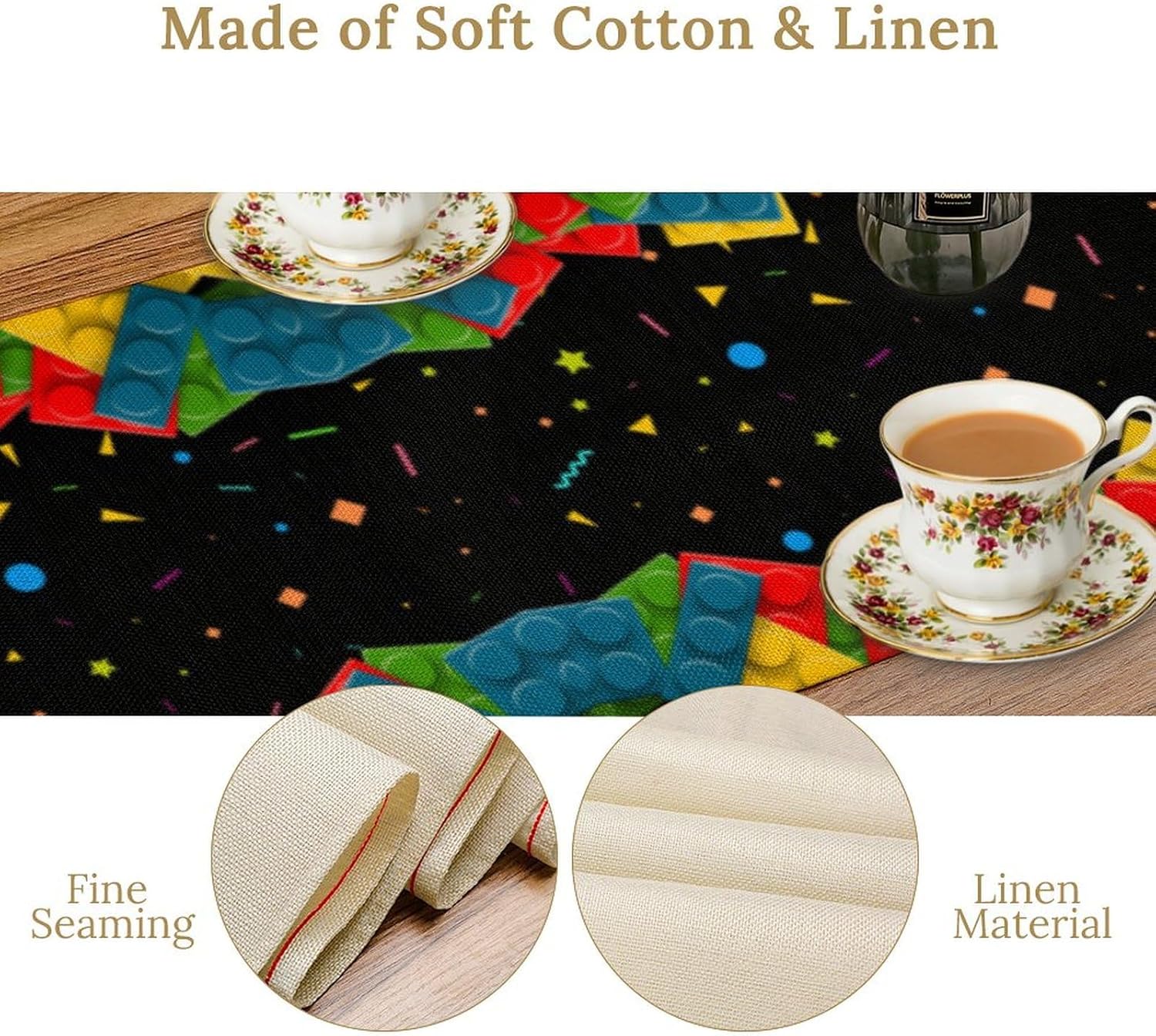 Building Blocks Colorful Blocks Table Runner for Kids Teens Bedroom Living Room Kitchen Birthday Party Decor - 13x36 Inch