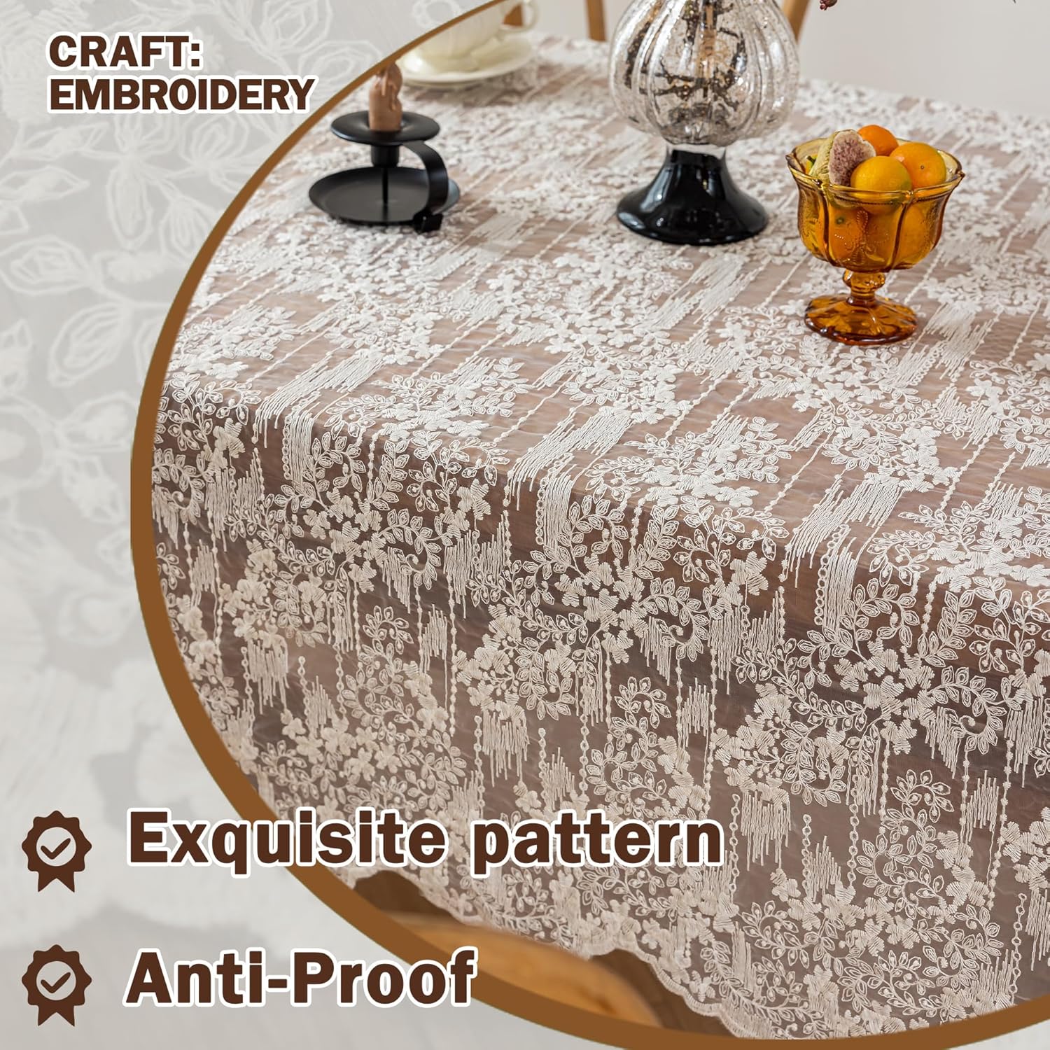 Lace Embroidered Tablecloth. Rectangle Lace Vintage Tablecloth Dustproof Table Protector for Kitchen Dining Room Party Banquet Home Picnic Wedding Decoration (Creamy White 78.5×53 inch)