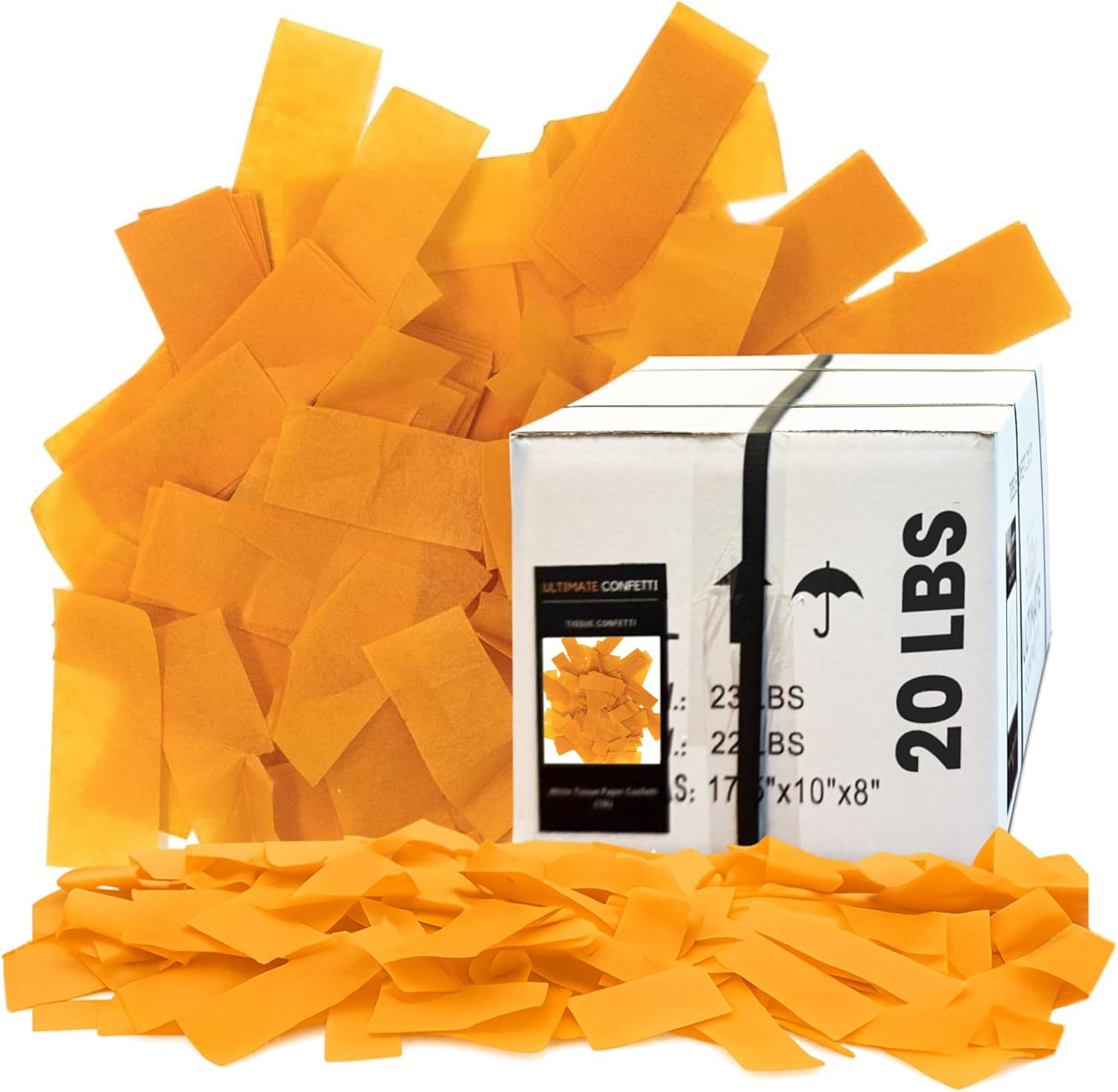Orange Biodegradable Confetti – Rectangular Fluttering Tissue Paper Confetti for Cannon and Launcher use – Best for Gender Reveal, Parties, Concerts and Weddings - 20 lb, 320 oz