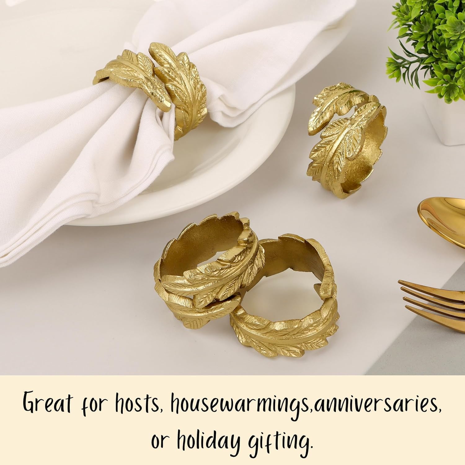 - ✅ Size & Pack : Set of 12 Leaf Napkin Rings - Each ring measures approx. 1.25 x 1.25 x 1.75 inches, perfectly sized for standard cloth napkins, enhancing table settings with a stylish gold accent.