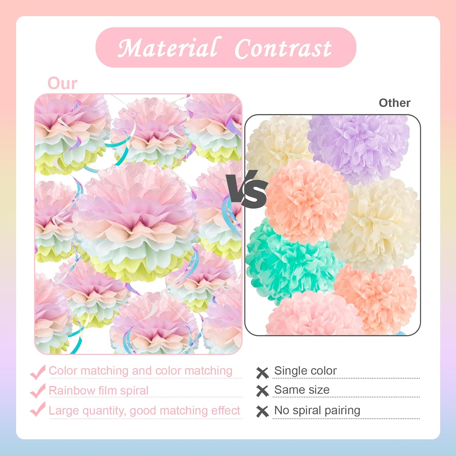 - Ideal for Various Celebrations and Themed Parties - These pastel paper pom poms are perfect for any girlโs birthday party, baby shower, Easter celebration, or themed event like mermaids, unicorns, or fairies. Whether you're hosting a small intimate gathering or a larger bash, these decorations add charm and character to your venue, making them a must-have for any party planner.