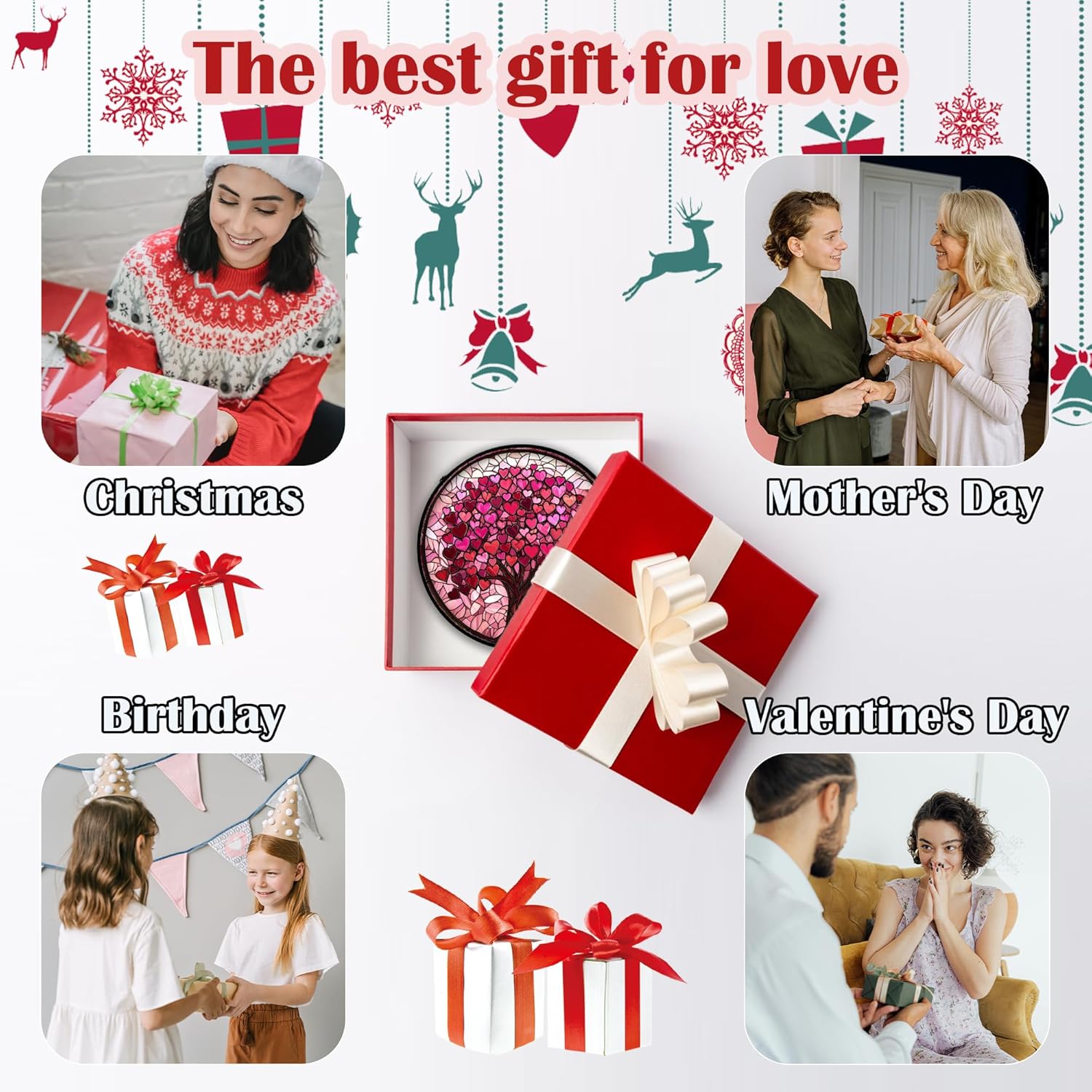 Stained Glass Window Hanging, Pink Love Tree of Life Sun Catchers Colorful Glass Panel Suncatcher Decor for Birthday for Women, Men, Wife, Lovers, and Mom 9.8 in