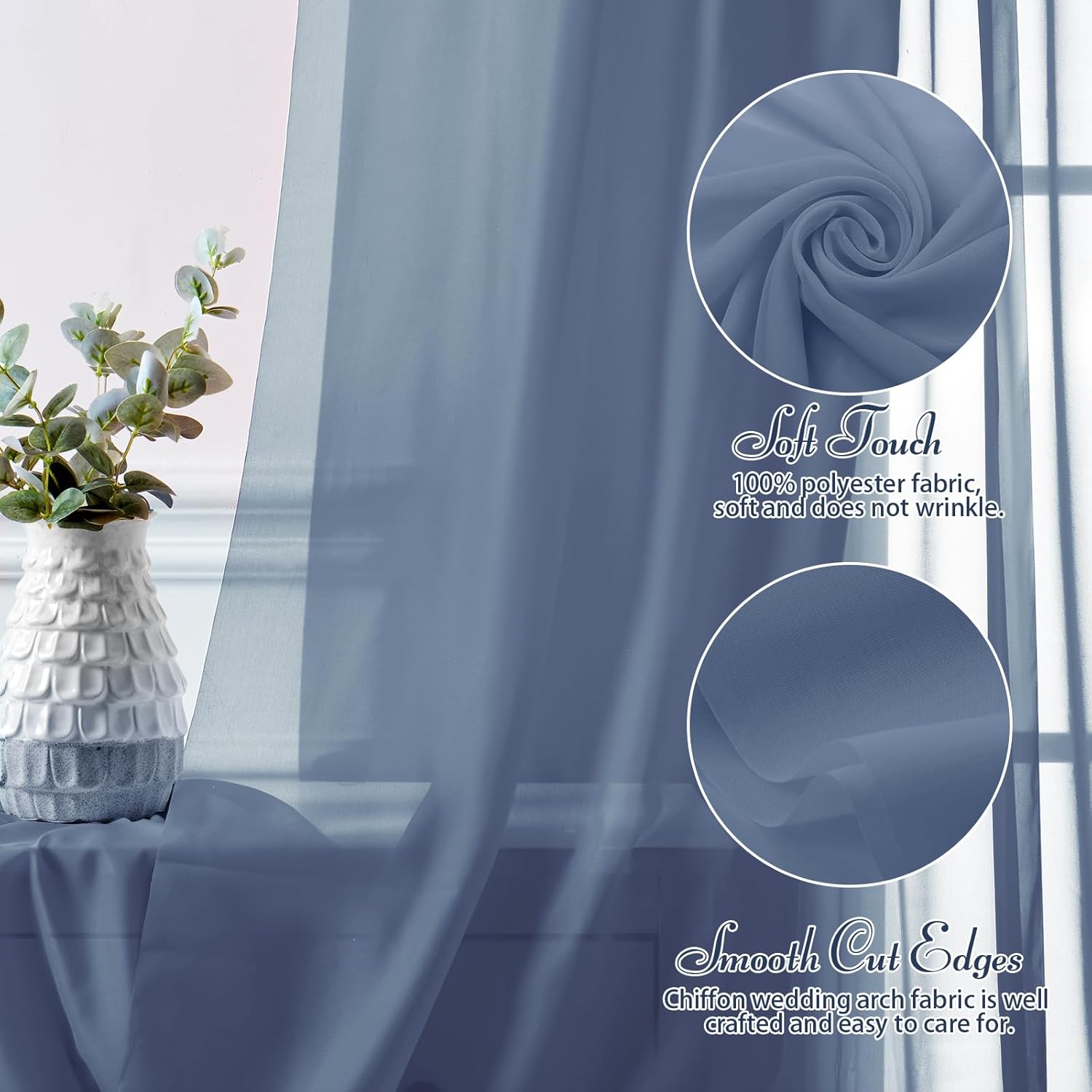 SiinvdaBZX 2 Panels Wedding Arch Draping Fabric 30" x 20Ft Dusty Blue Sheer Chiffon Fabric Outdoor Extra Long Decorative Drapery Fabric for Party Ceremony Ceiling Curtain Backdrop