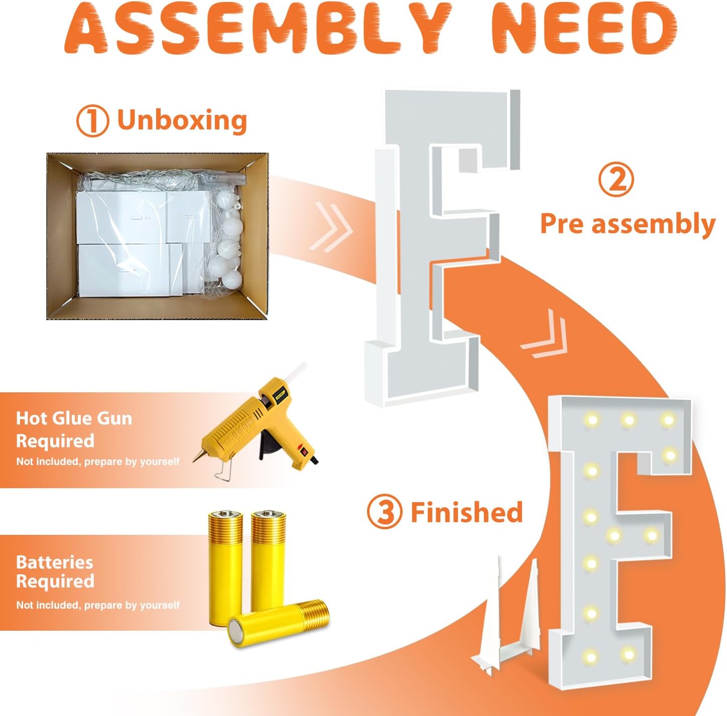 - EASY TO ASSEMBLE: The package includes pre-cut foam boards, light strings and instructions. Each foam board has slots and is numbered, so you can match them according to the 2 same numbers. All you need to do is to prepare a hot glue gun and 3 AA batteries, follow the step-by-step instructions or online video for a hassle-free assembly. Decorate the party with your kids or friends and enjoy the DIY fun. (Note: Glue gun, glue and batteries are not included)