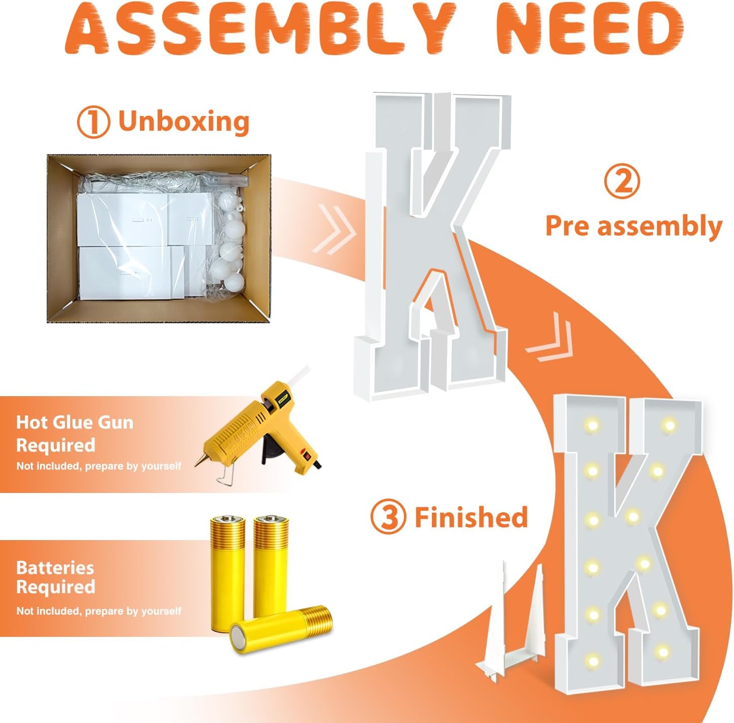 4FT Marquee Letters K, Party Decoration Large Marquee Light Up Letters, Pre-cut Foam Board Letter Set for Birthdays Baby Shower Wedding Event Bridal Shower Engagement Anniversarty Party Decor