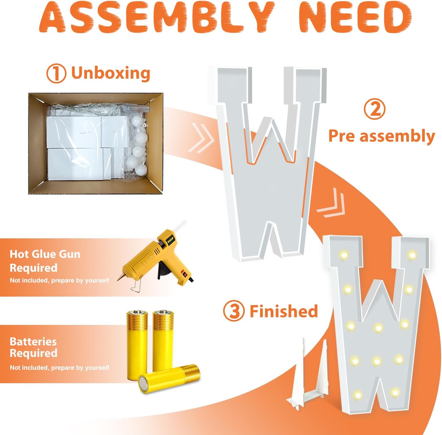 4FT Marquee Letters, Warm Light Marquee Light Up Letters W, Large Light Up Letter for Birthday Anniversary Wedding Engagement Decorations, Big Letter Signs for Party Decor