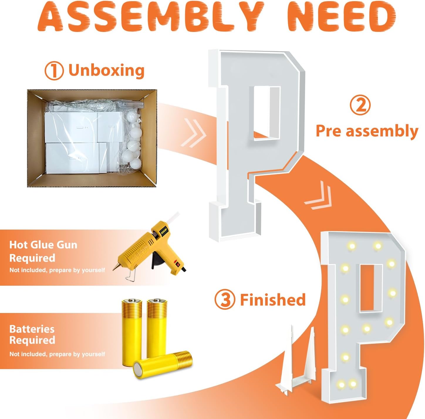 - EASY TO ASSEMBLE: The package includes pre-cut foam boards, light strings and instructions. Each foam board has slots and is numbered, so you can match them according to the 2 same numbers. All you need to do is to prepare a hot glue gun and 3 AA batteries, follow the step-by-step instructions or online video for a hassle-free assembly. Decorate the party with your kids or friends and enjoy the DIY fun. (Note: Glue gun, glue and batteries are not included)