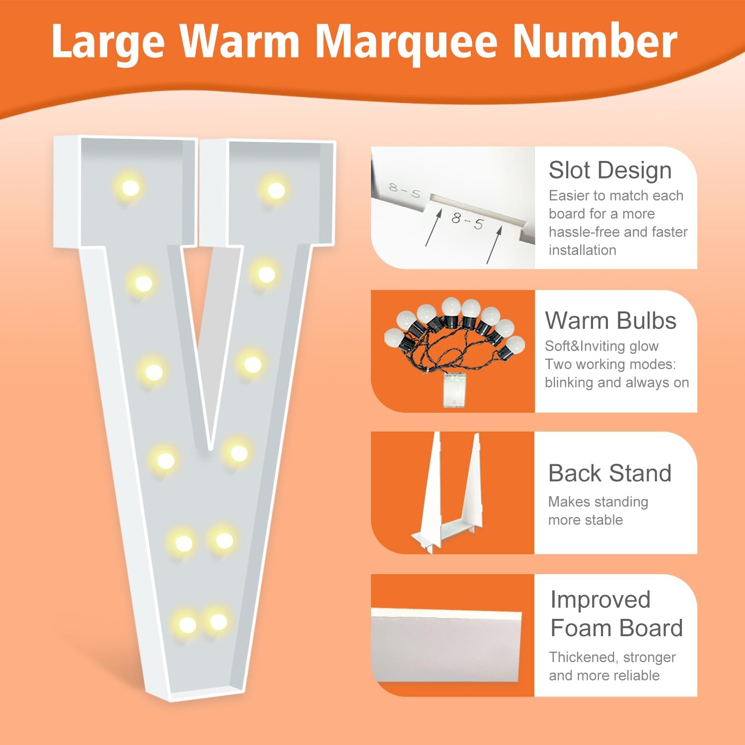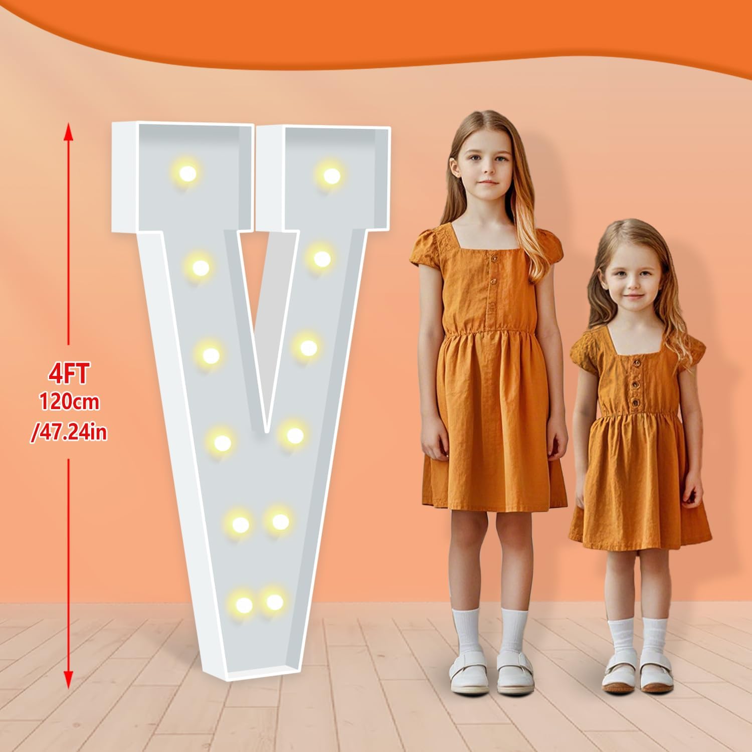 4FT Marquee Letters, Mosaic Large Letters V for Birthday Party, Light Up Letter for Wedding Backdrop Decoration Anniversary Baby Shower Day Decor, Pre-Cut Big Foam Board Frame Kit