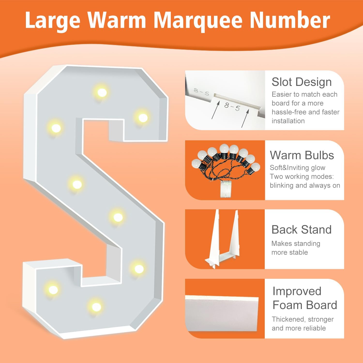 Marquee Light Up Letter S, Light Up Letters Art Craft Kit for Party Decorations, 3FT White Foam Board Letters for Baby Shower, Birthday, Wedding, Engagement Decorations