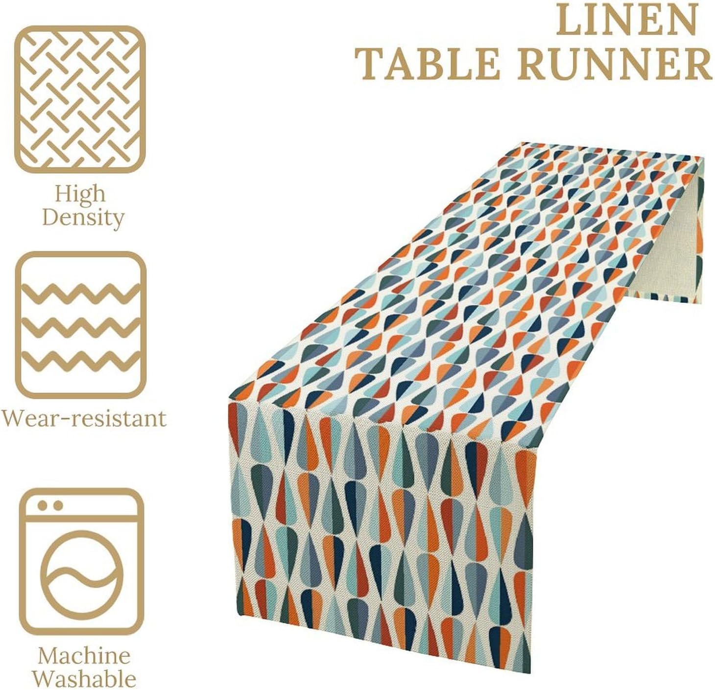 Mid Century Table Runner, Modern Style Retro Pattern Droplet Shapes Mosaic Tones Pattern Print for Home Kitchen Table Decor Dining Coffee Room Party Decor 13x36in
