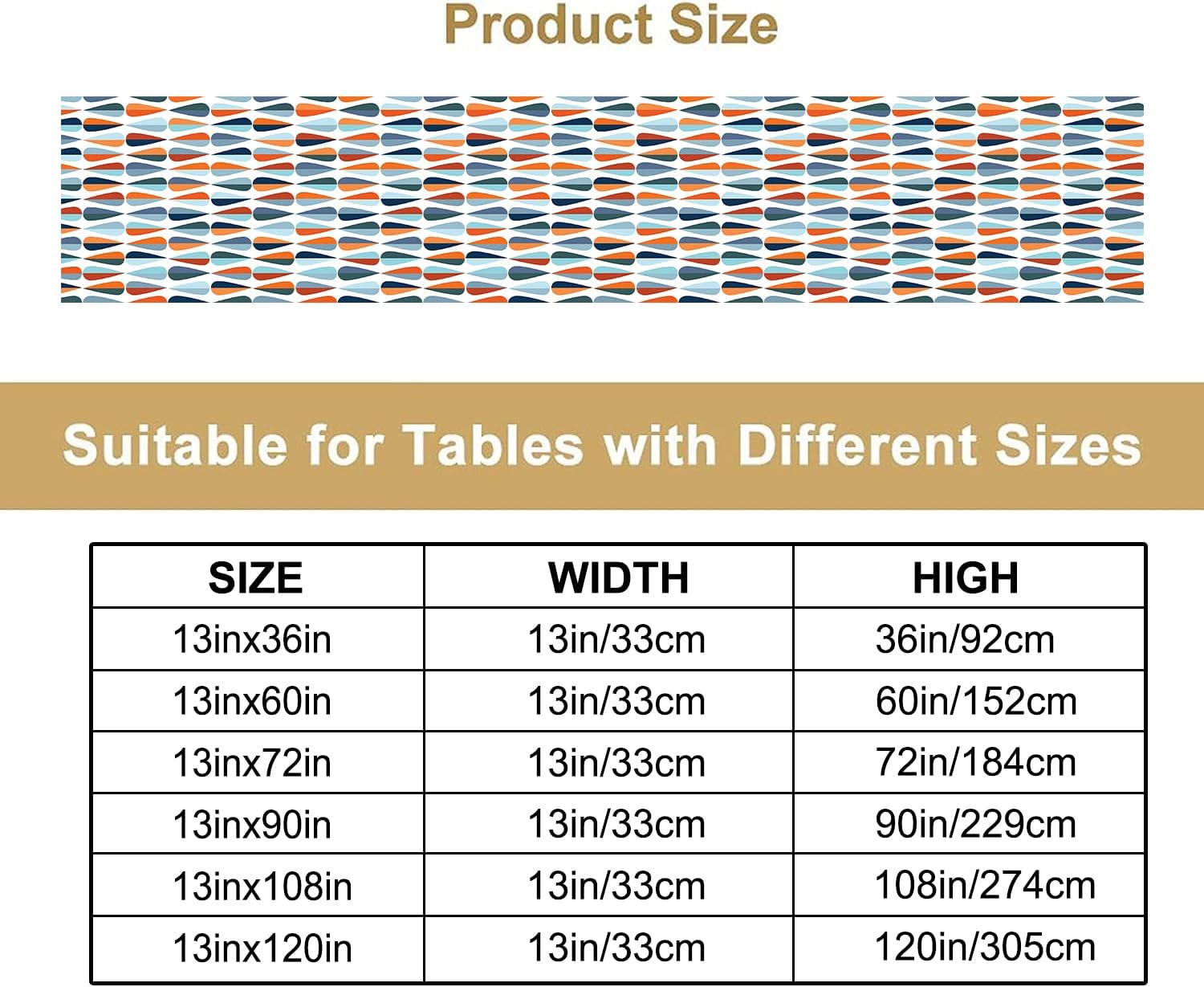 Mid Century Table Runner, Modern Style Retro Pattern Droplet Shapes Mosaic Tones Pattern Print for Home Kitchen Table Decor Dining Coffee Room Party Decor 13x120in