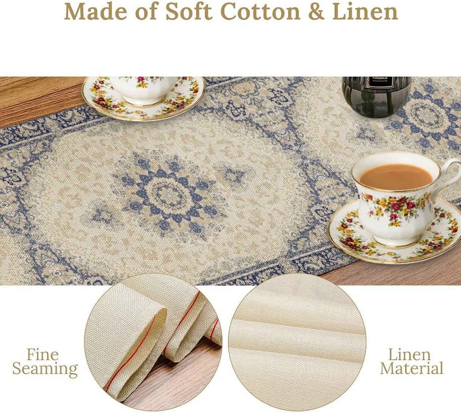 - Linen High-Quality Table Runner : Our table runners are made of high-quality polyester fabric, which is soft, durable, and has a silky feel, Protect your table top from stains,or scratch