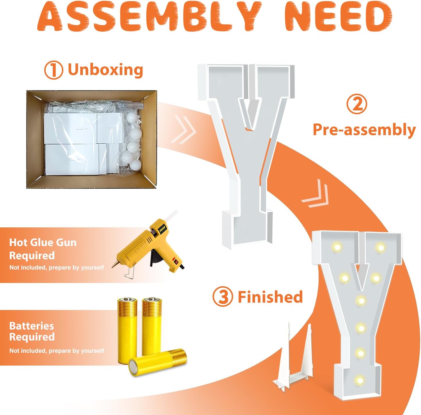Marquee Letters 3 Feet Tall, Warm White Light Up Letters Y, Large Marquee Letter for Birthday Anniversary Graduation Party Decoration, DIY Letter Kit for Baby Shower Valentines Decor