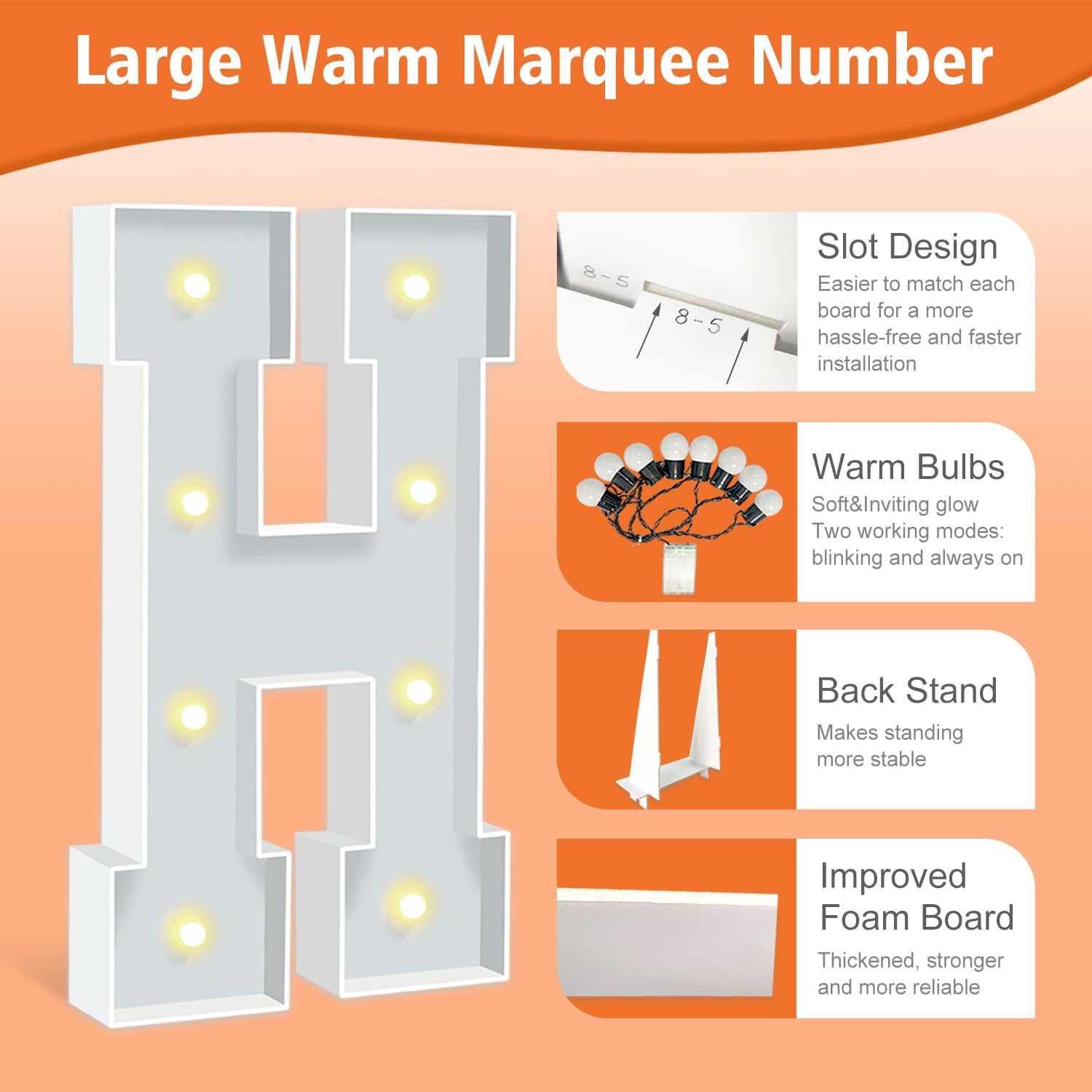 3ft Marquee Letters H, Light Up Letters, A-Z Warm Yellow LED Light Up Sign for Happy Birthday, Graduation, Wedding, Engagement, Holiday Party Background Arch Decoration