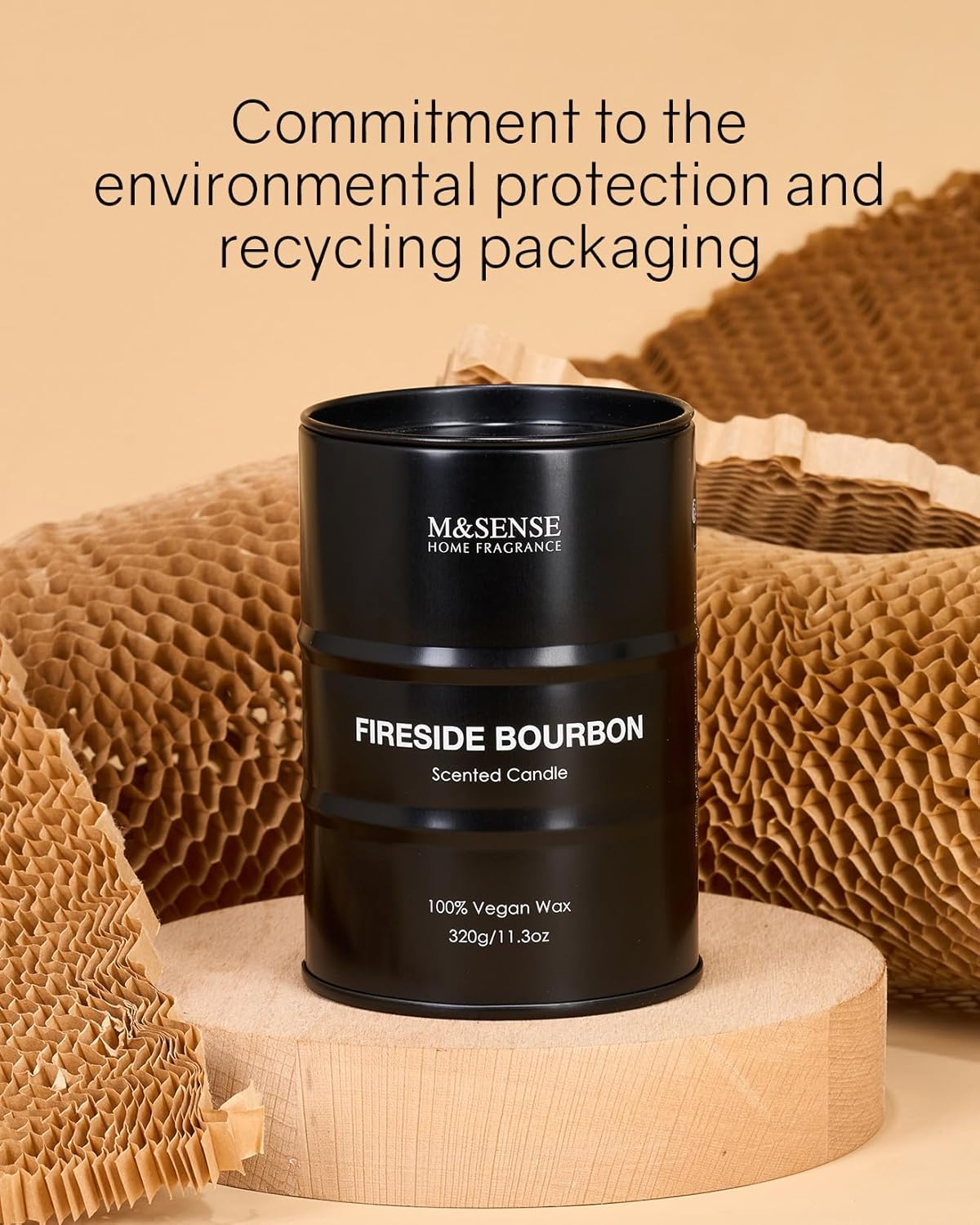 M&SENSE Scented Candle, Fireside Medium Jar Candle Gifts for Men, 70 Hours Slow Burning Natural Soy Candles 11.3oz, Stress Relief Aromatherapy Candles Home Decor, Valentines Day Gifts for Him