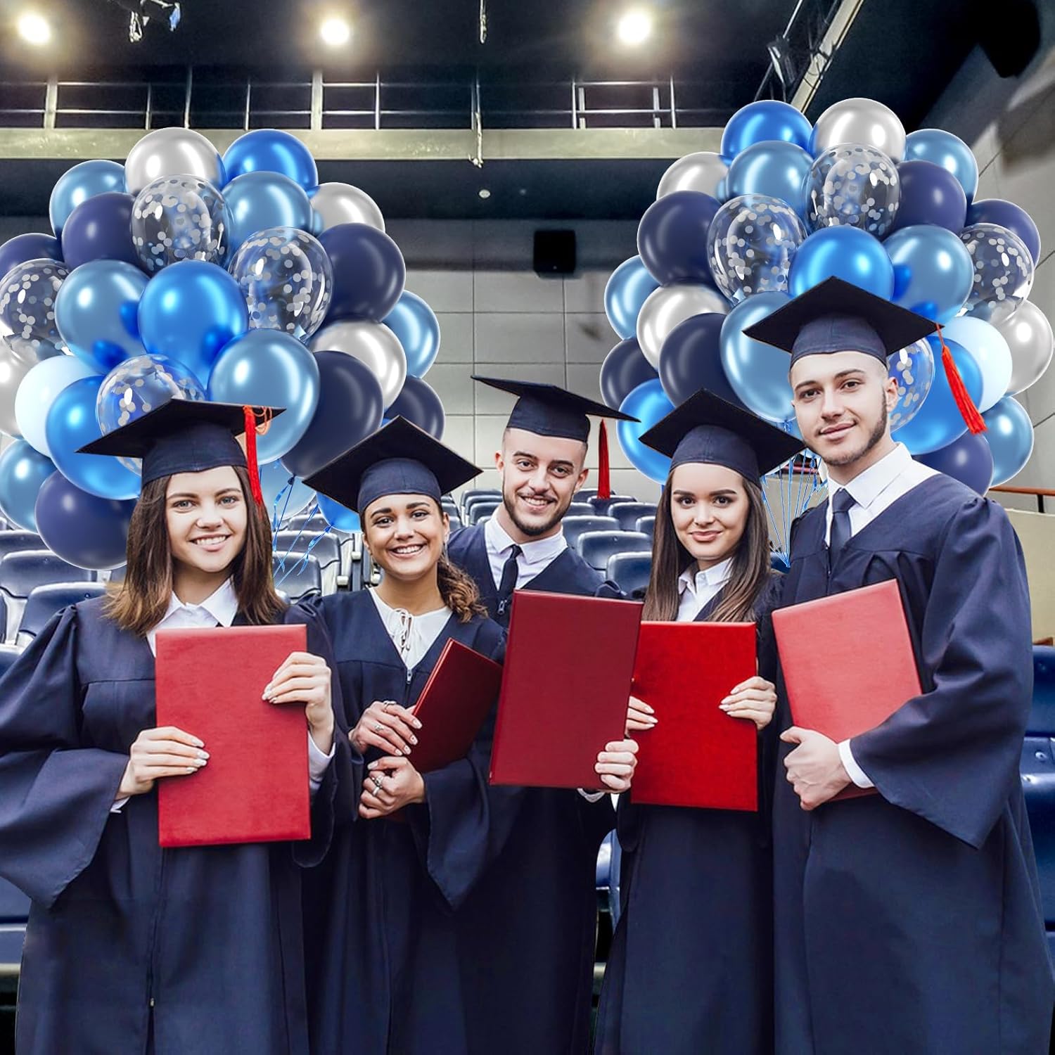 60pcs Blue and Silver Balloons 12inch with Navy Blue Pastel Blue Silver Confetti Balloons for Graduation Baby Shower Wedding Birthday Party Decorations