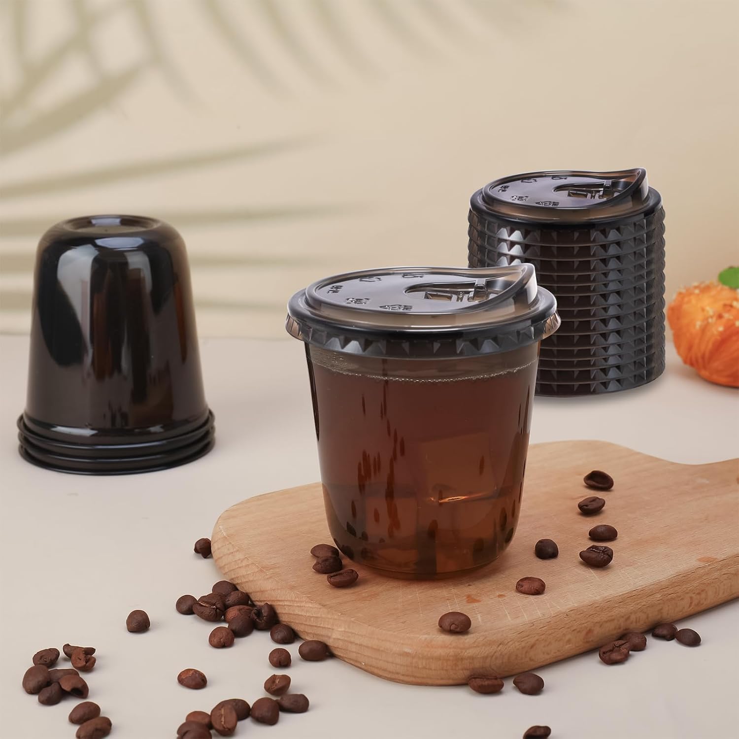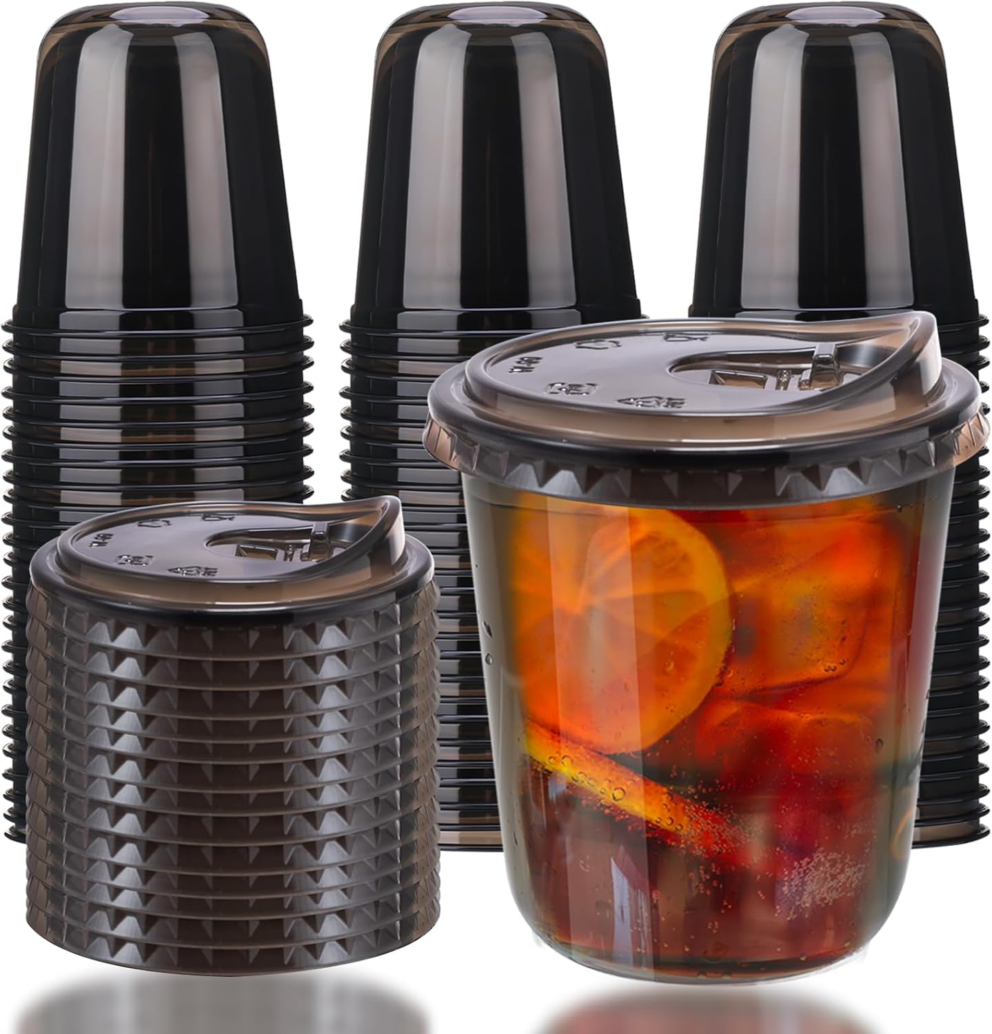 12oz Disposable Stemless Glasses With Strawless Sip Lids,PET Disposable Drinking Cups,Clear Plastic Wine Glasses for Parties Birthday,Wedding,Meeting,Christmas Party Supplies. (50, Black)