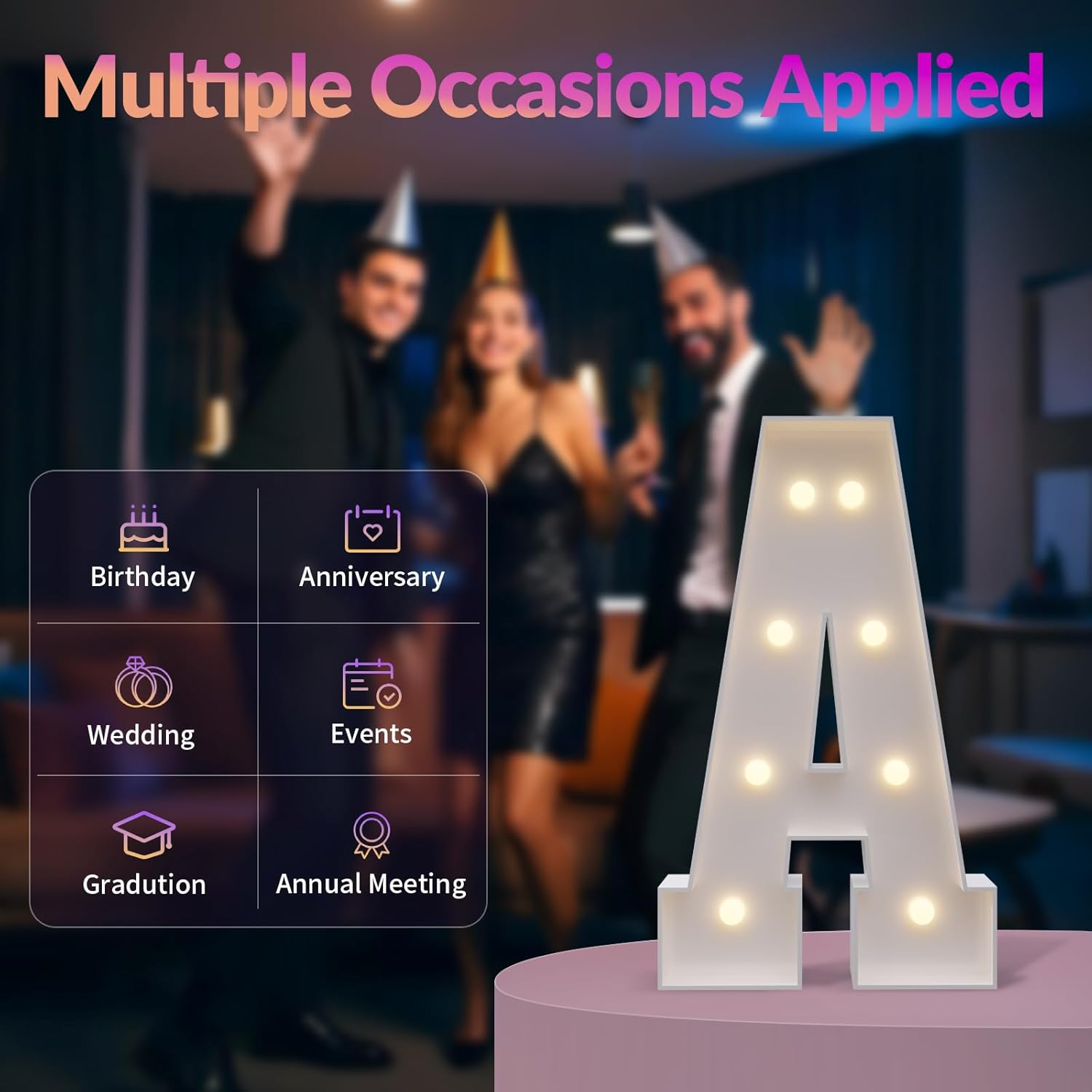 - Lighted Letters for Event Decoration: Brighten your celebrations with stunning marquee letters.Perfect for baby showers, birthdays, graduations, anniversaries, and proposals, they enhance your eventβs atmosphere while adding a personal touch.