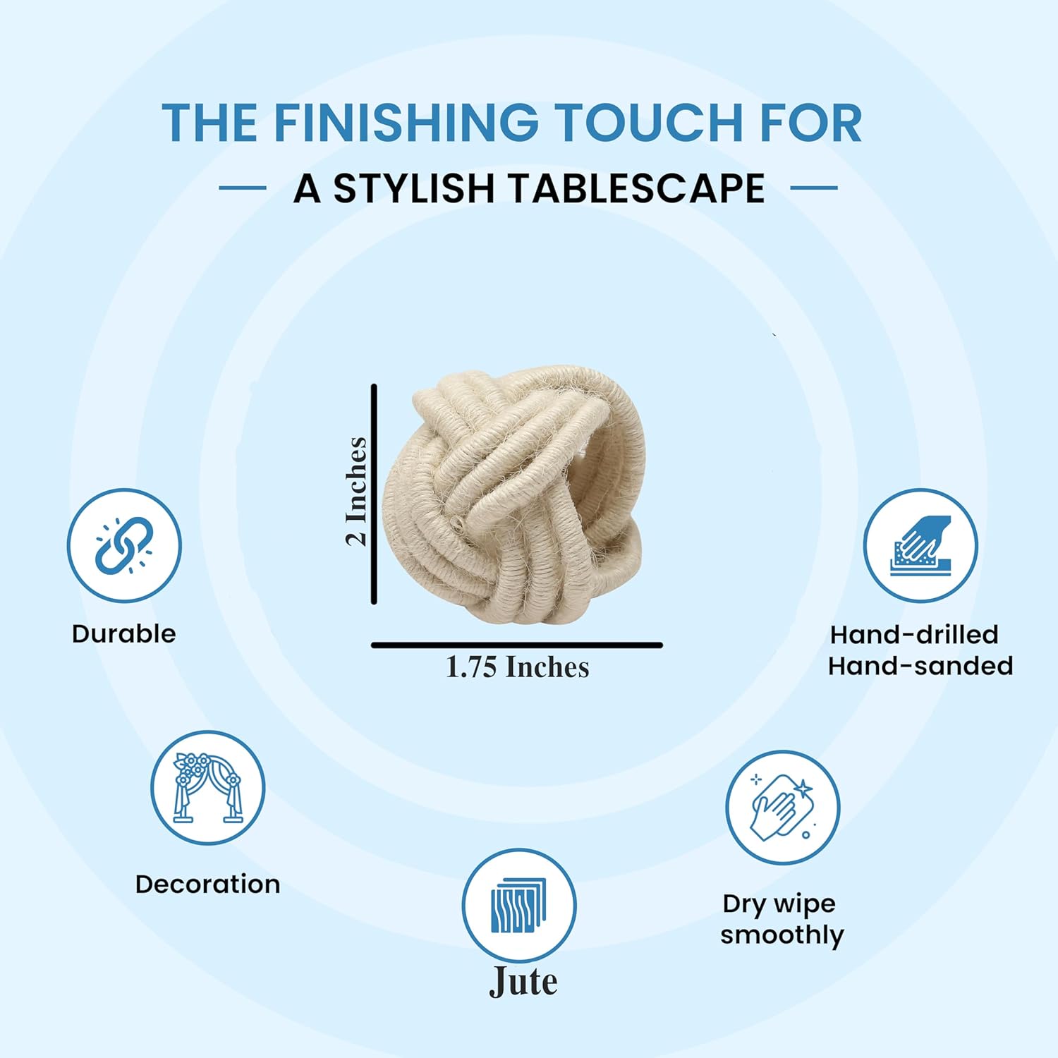 Farmhouse Napkin Ring Set of 12 - Handwoven Cotton & Jute Knot Design for Table Decor, Weddings, Dinner Parties & Everyday Dining - Decorative Adornment for Table Setting (Off White) - CLEENTABLE