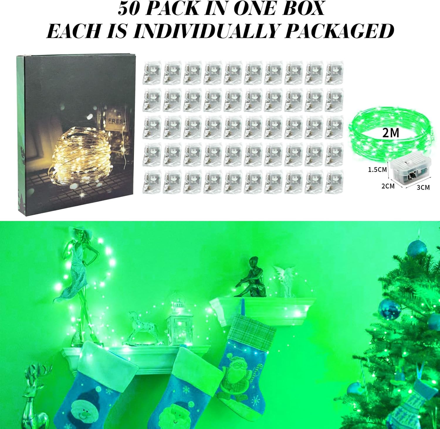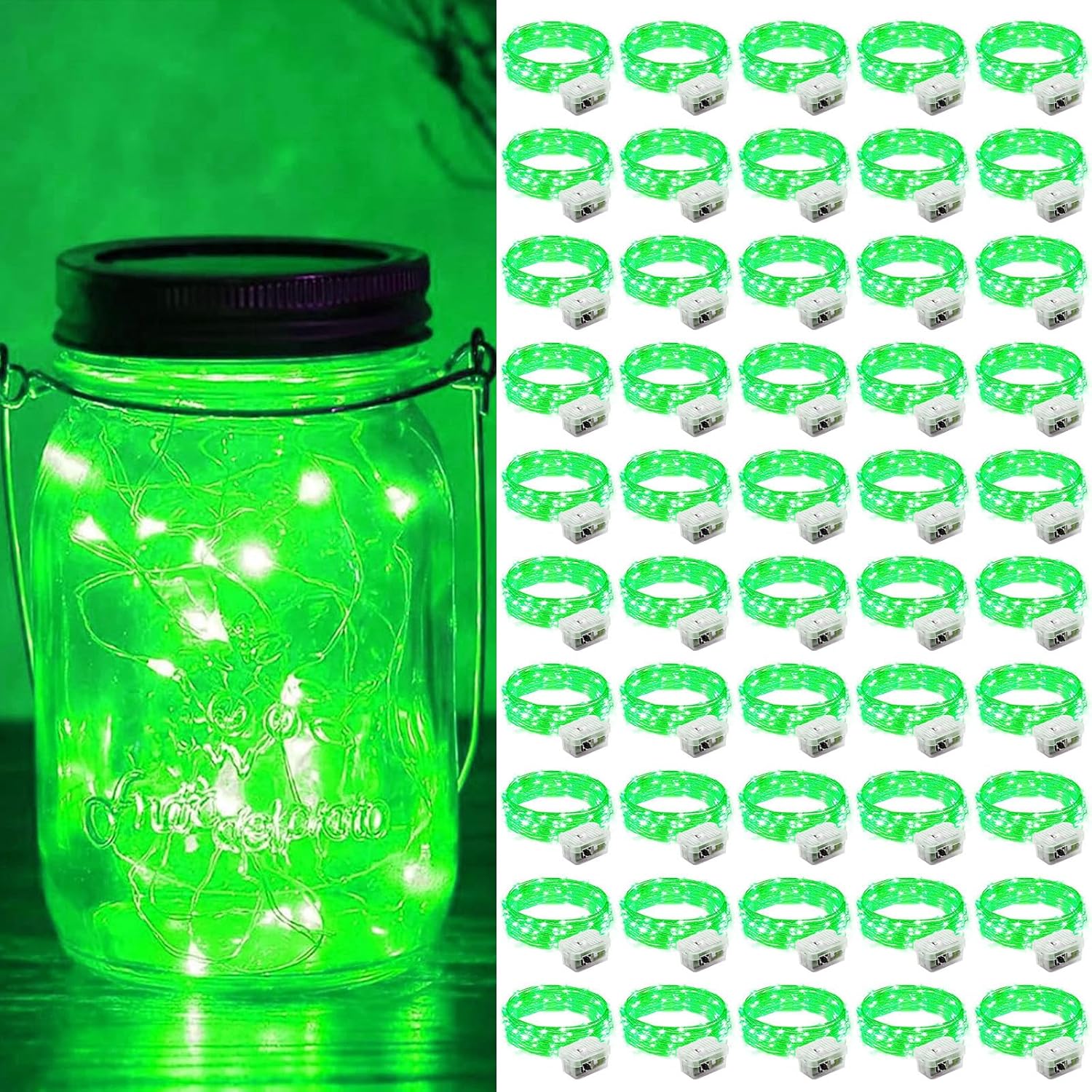 ZGWJ 50 Pack Fairy Lights Battery Operated, 7ft 20 Mini LED Fairy String Lights Silver Wire 3 Modes for DIY, Parties, Wedding, Bedroom, Halloween Christmas Decoration Green