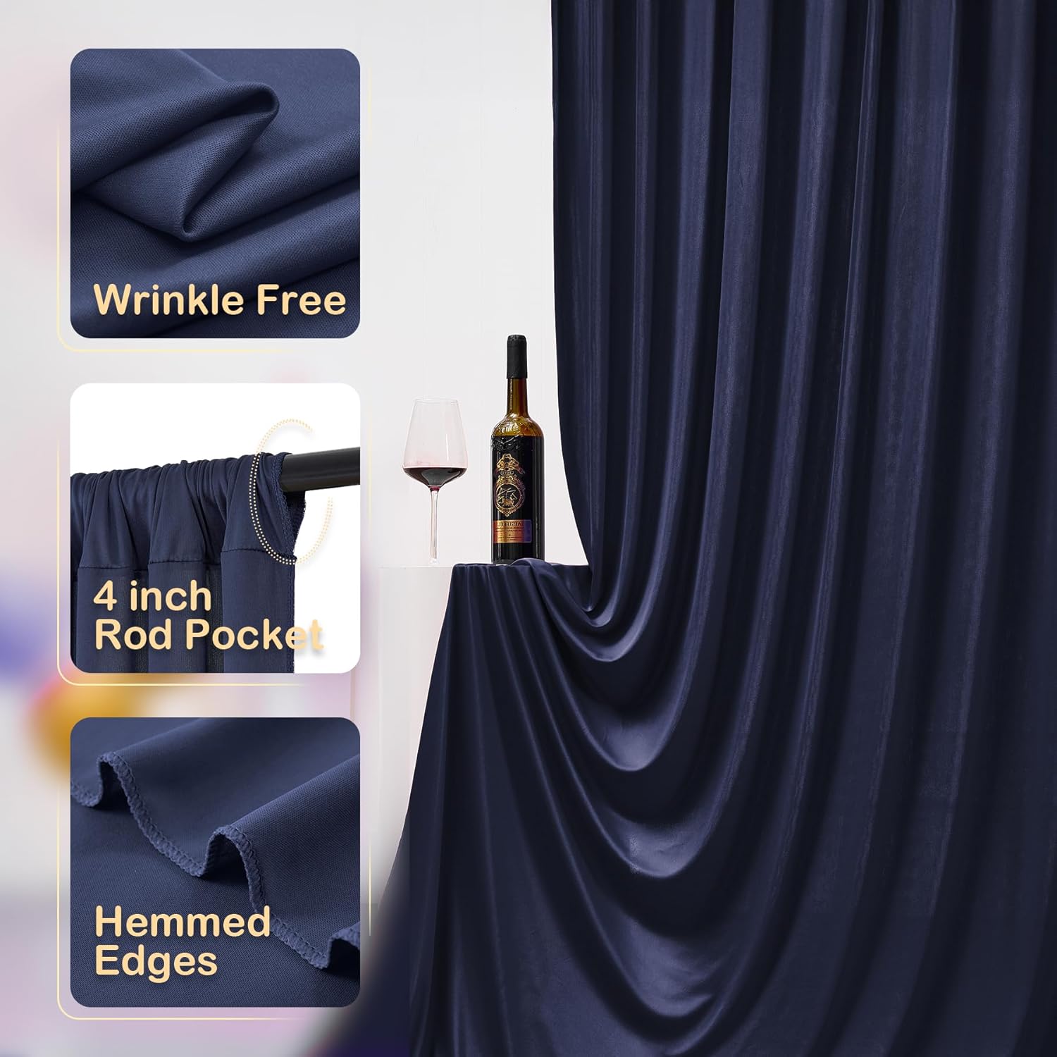 - 10ft Fabric Drape navy blue Backdrop Curtain Wide Compatibility: Polyester photo drape blue backdrop curtain can be used for parties, baby shower, wedding, birthday party, photography, bridal shower, gender reveal, zoom, princess party, engagement party, baptism, candy buffets, dessert table, sweet table, background, photo booths, photoshoot, ceremony, anniversary, graduation, home decorations, holiday party, stage curtain or just to mask unsightly areas