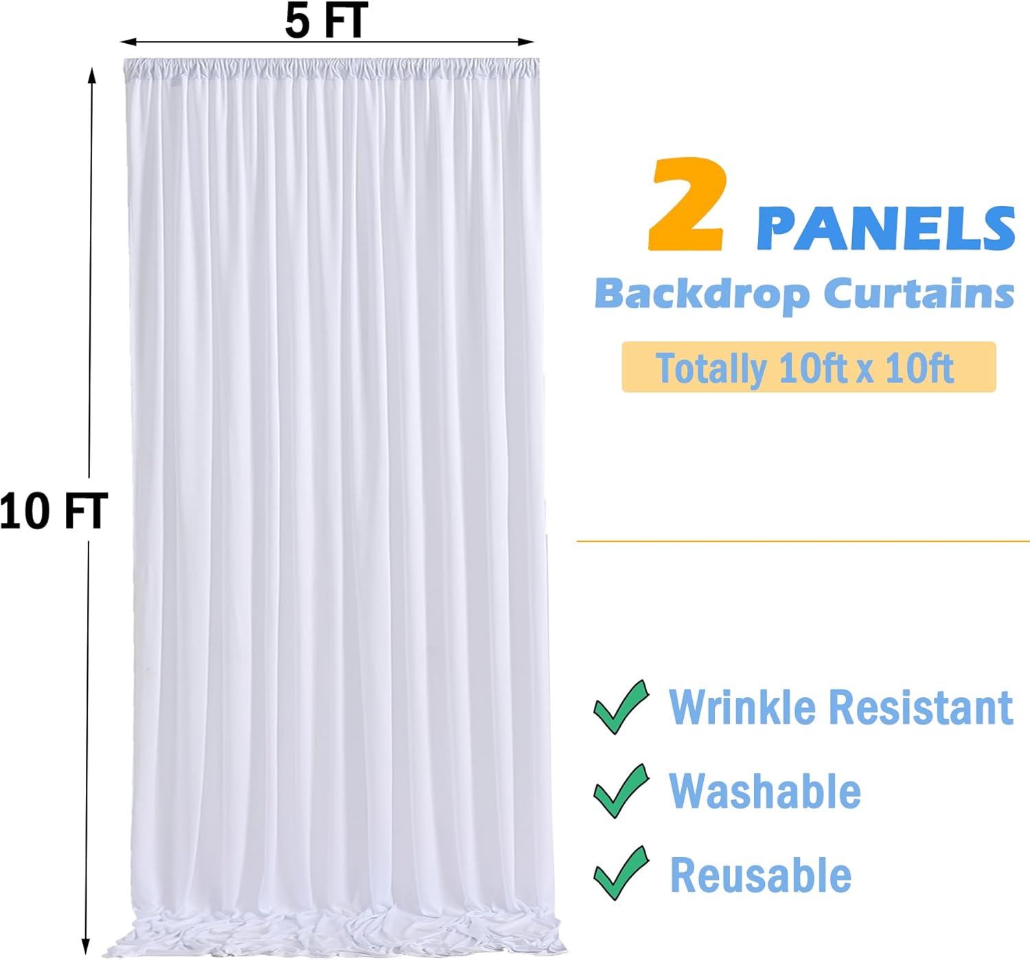 - Package: 2 Panels 5ftx10ft White Curtains Backdrop for Parties. Totally 10FT(Width) x 10FT(Height). cortinas para fiestas decoracion.