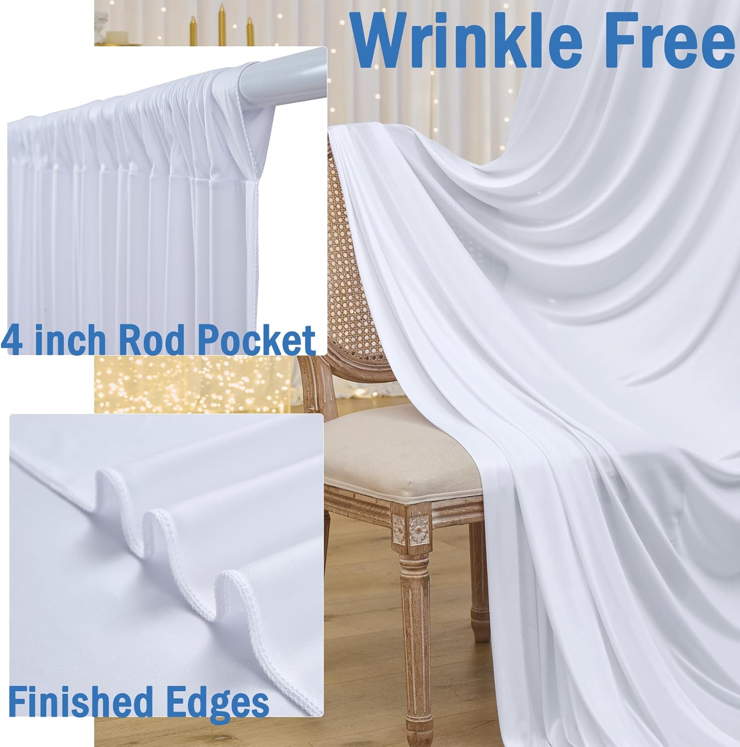- Wrinkle Free Fabric: Soft & Smooth; Drape Nicely; Washable; Ironable; Reusable. The durable and quality fabric backdrops are perfect to create beautiful folds or leave it flowing loose onto the floor.