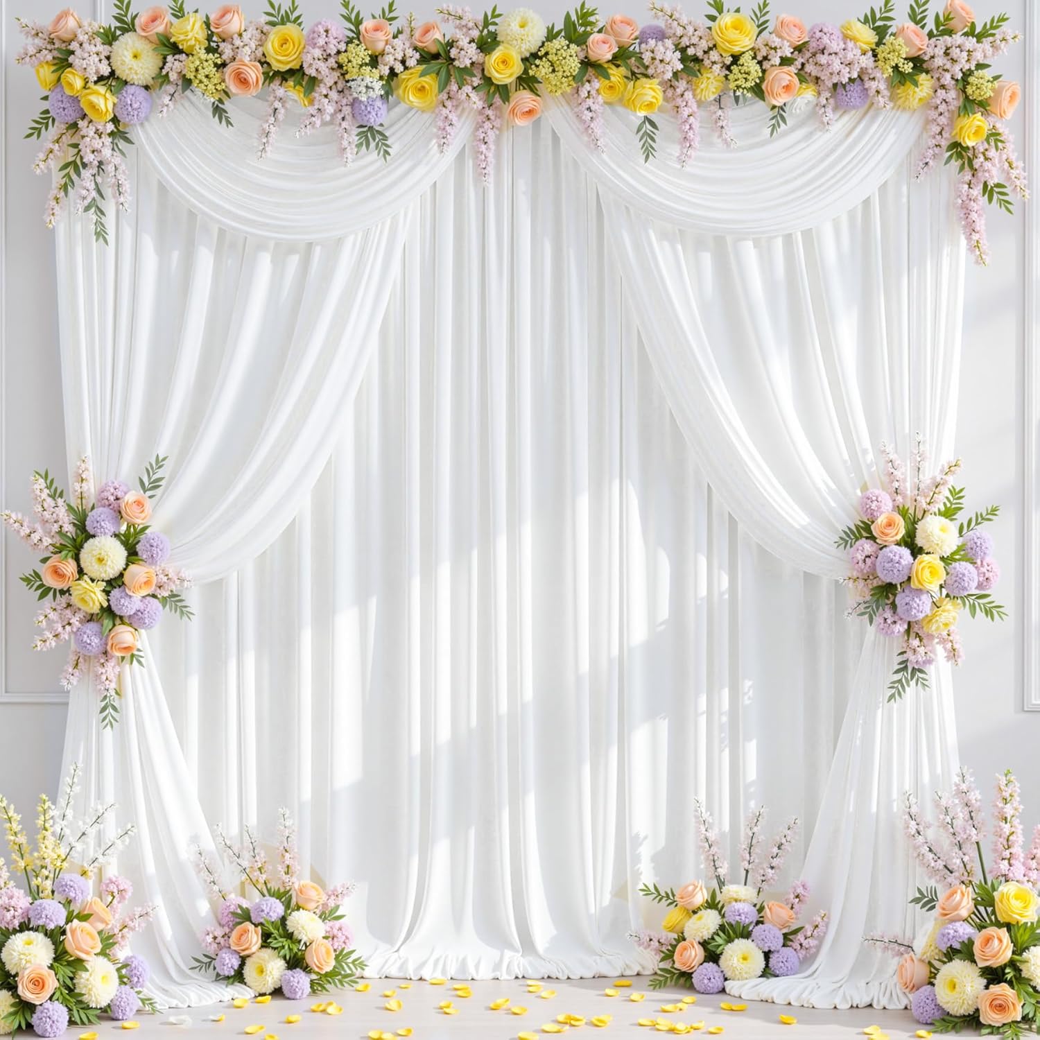 - Machine washable or hand wash. You can add some flowers or greenery, you can also use it with twinkle lights to make your polyester backdrop for a gorgeous look! ---Using 4/6 panels curtain backdrop at a time will create even more striking folds and depth, enhancing the visual appeal of your event space