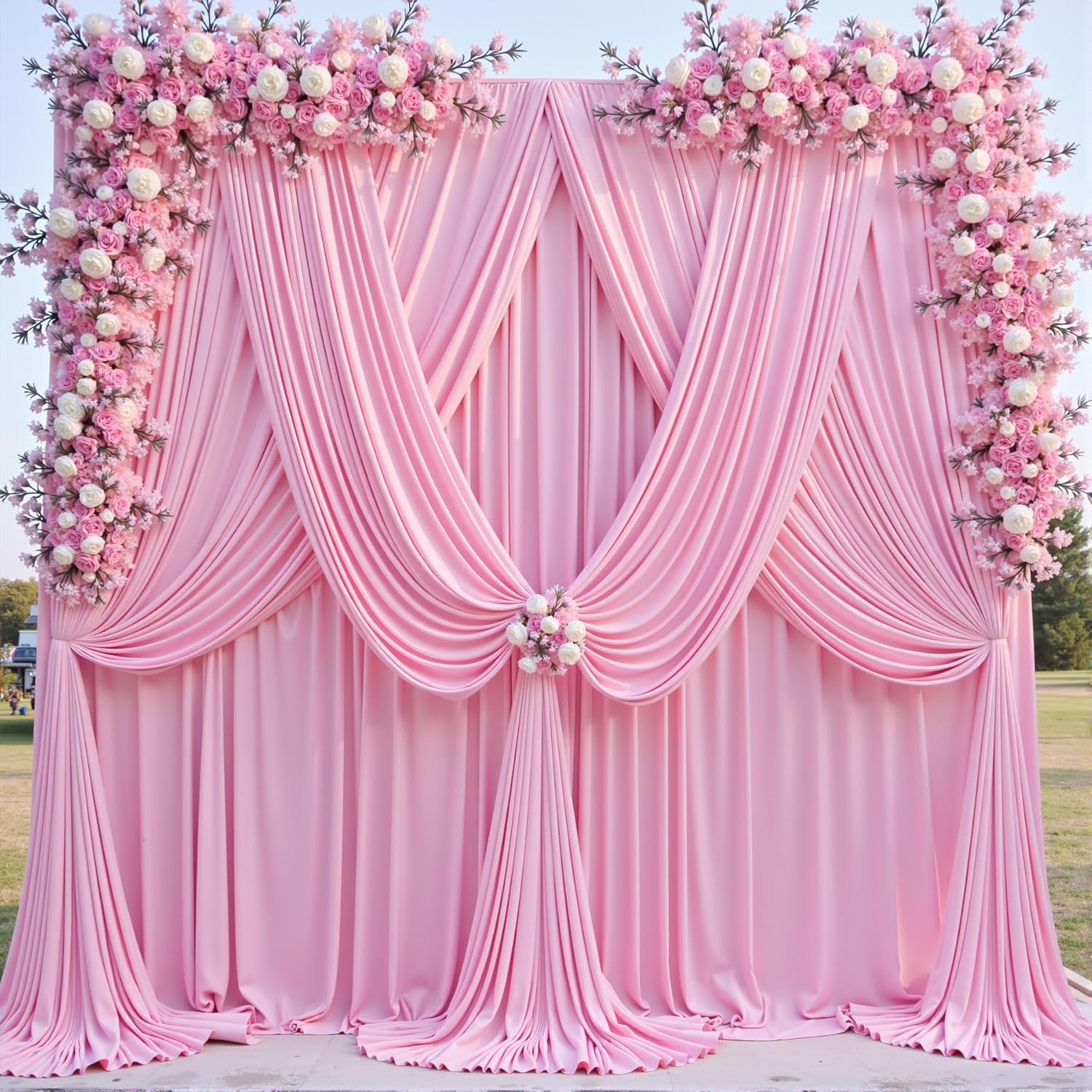 - 10ft Fabric Drape Pink Backdrop Curtain Wide Compatibility: Polyester photo drape Pink backdrop curtain can be used for parties, baby shower, wedding, birthday party, photography, bridal shower, gender reveal, zoom, princess party, engagement party, baptism, candy buffets, dessert table, sweet table, background, photo booths, photoshoot, ceremony, anniversary, graduation, home decorations, holiday party, stage curtain or just to mask unsightly areas