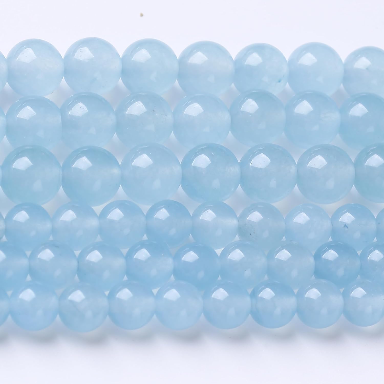 Ice Blue Chalcedony Stone Beads Gemstone Round Crystal Energy Jade Beads Stone Beads for Jewelry Making DIY Bracelet Necklace Jewelry Making 1 Strand 15.5inch 35PCS 10MM