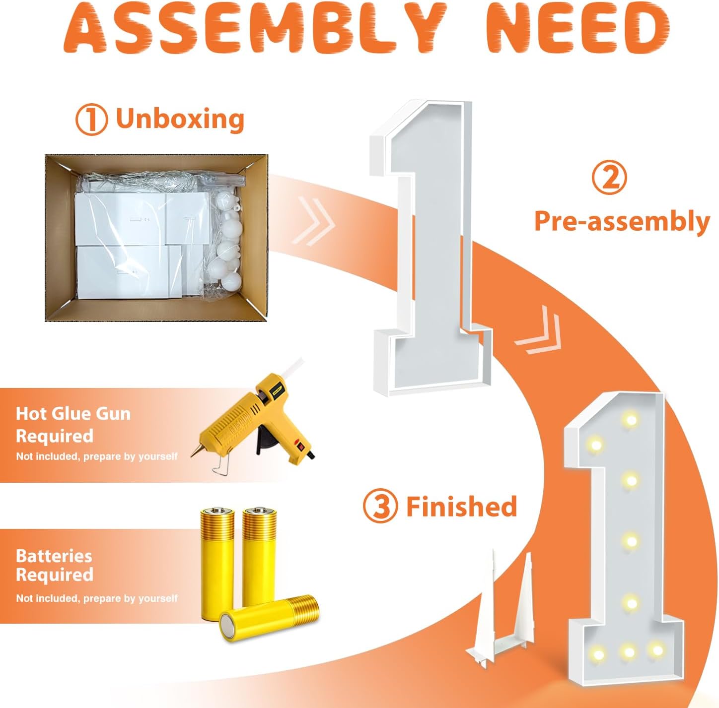 - EASY TO ASSEMBLE: The package includes pre-cut foam boards, light strings and instructions. Each foam board has slots and is numbered, so you can match them according to the 2 same numbers. All you need to do is to prepare a hot glue gun and 3 AA batteries, follow the step-by-step instructions or online video for a hassle-free assembly. Decorate the party with your kids or friends and enjoy the DIY fun. (Note: Glue gun, glue and batteries are not included)