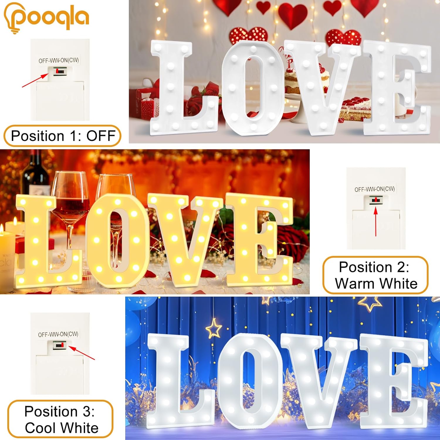 - 2 Optional Colors: Each LED letter has two colors for you to choose, respectively, warm white and cold white. There is a switch behind the letters, and you just need to adjust the switch left and right to choose the color you want