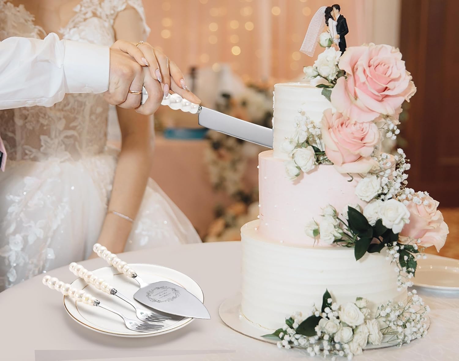 Wedding Cake Knife and Server Set,Ceramic Pearl Handle Cake Cutting Set for Weddings, Engagements, Anniversaries, and Engagement Gifts for Couples