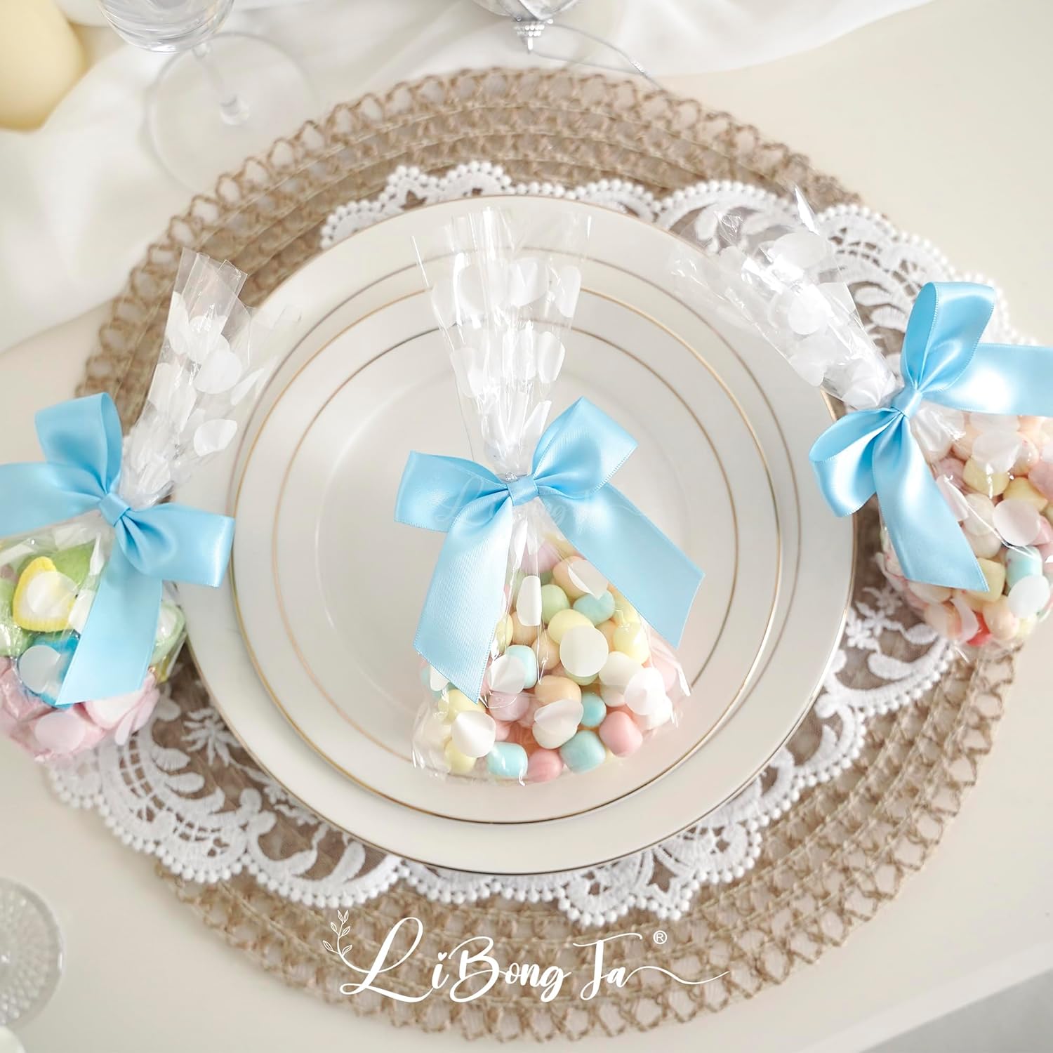 3.5" Blue Bow Satin Pre-Tied Bows for Gift Wrapping, Small Bows for Crafts, Premade Bows, Candy Apple Bows, Twist Tie Bows for Cake Decorating, Party Favor, Wedding Decoration-36 Counts