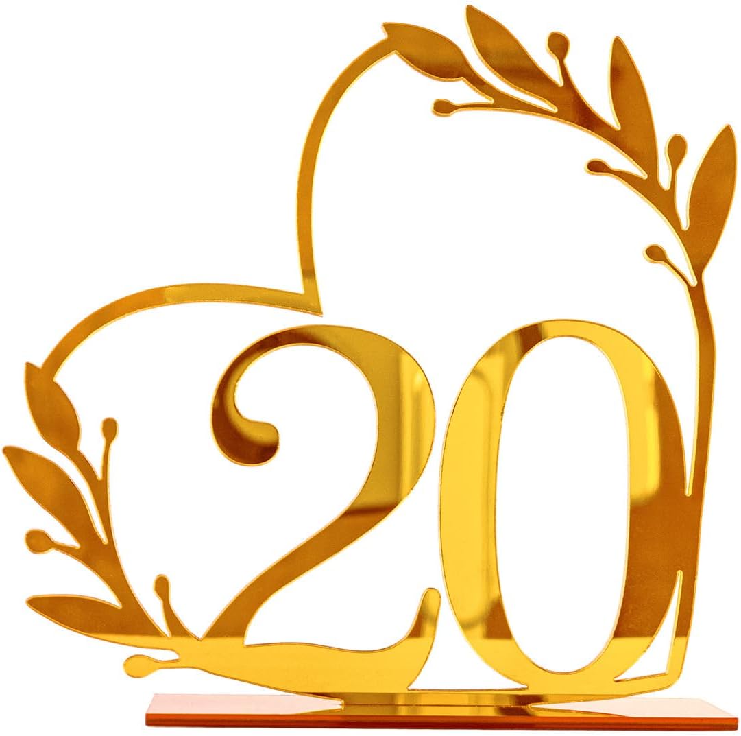 Gold Acrylic Heart-Shaped Table Numbers 1-20 for Weddings, Anniversaries, Parties, Birthdays, Events | 4.5" x 4.5"