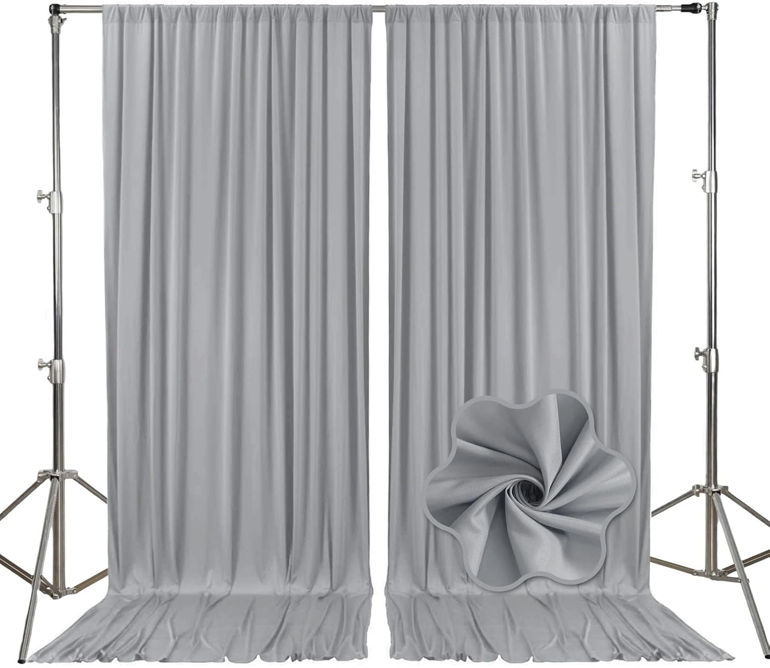10ft x 10ft Dark Grey Backdrop Curtains for Parties, Fabric Satin Background Curtain with Rod Pockets for Weddings, Birthday, Baby Shower, Photography, Graduation Party Backdrop Drapes, 2 Panels