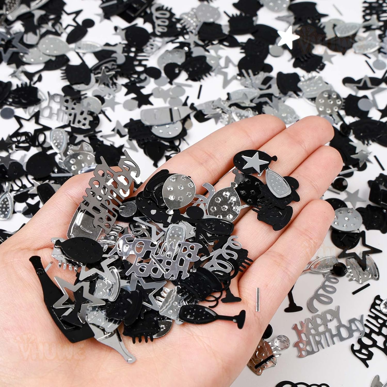 - Package Include: Happy birthday confetti 1.6 oz / 45 g, black and silver, 10 shapes, the sufficient quantity will meet your birthday party decorations