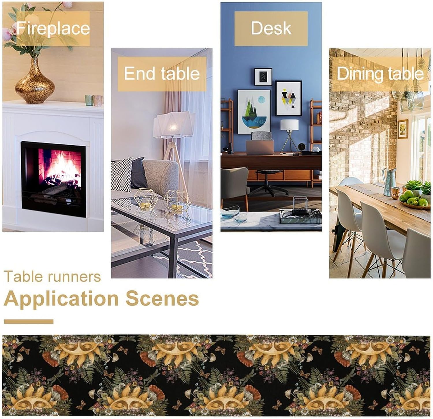 Sun Moon Table Runner, Bohomian Mushroom Daisy Table Gothic Dragonly Butterfly Table Center Decor Table Runner for Indoor Outdoor Party Kitchen Dinner Black, 13x70 Inch