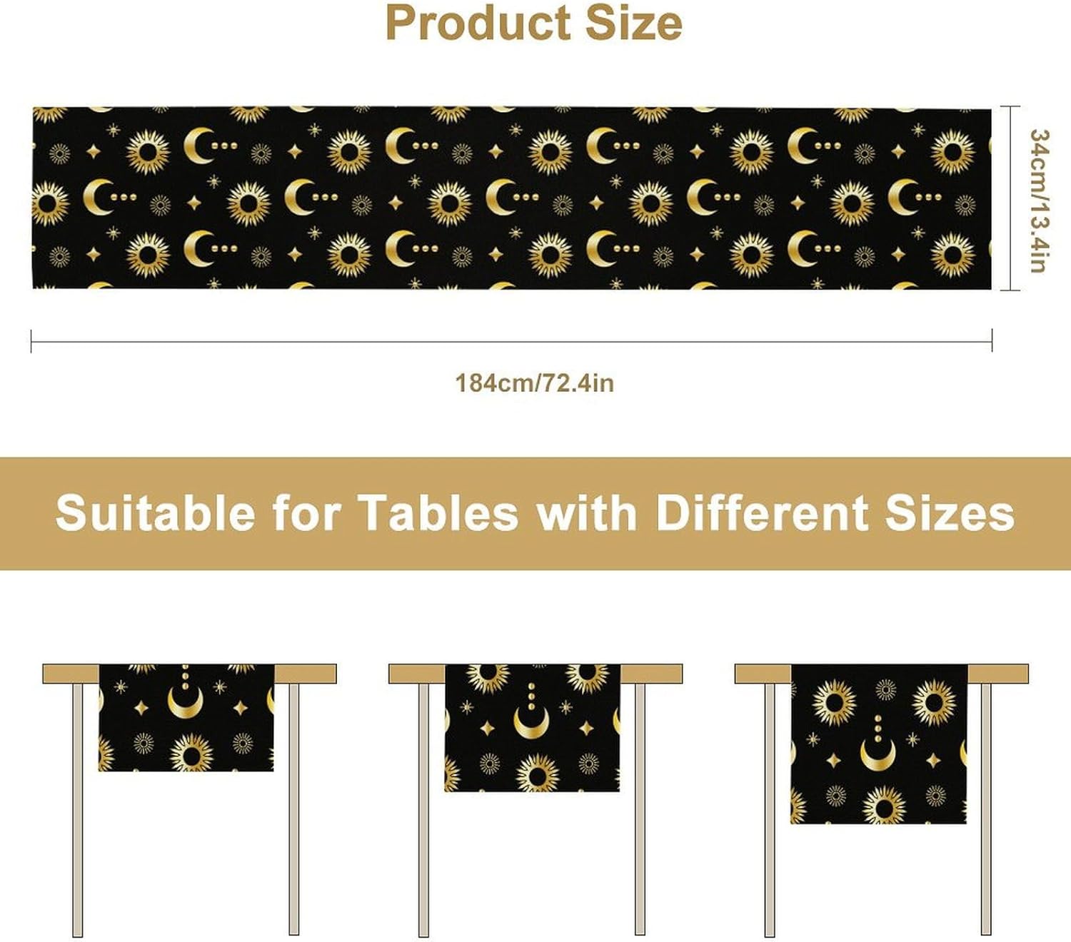 Magic Gold Sun Moon Stars Table Runner Mystical Farmhouse Rustic TableRunner for Party Holiday Dining Room Kitchen 13x108 Inch