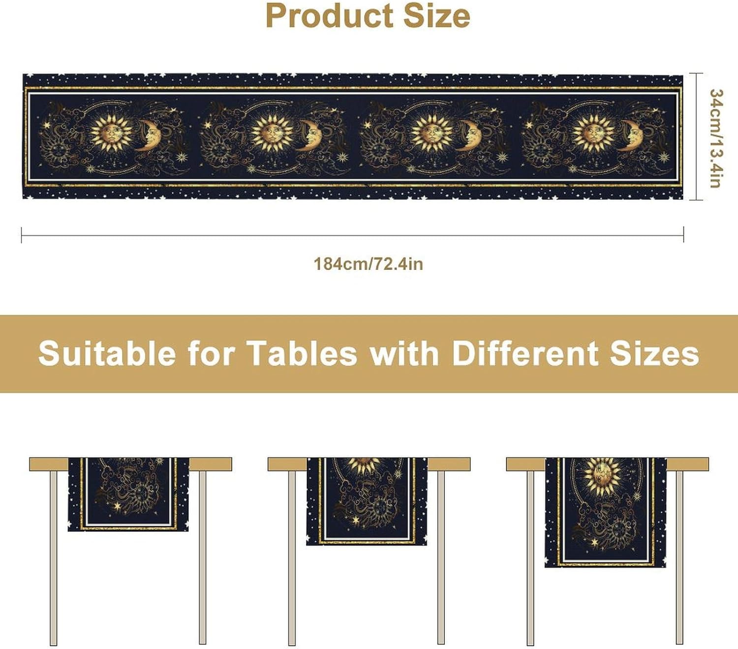 Sun Moon Table Runner, Seasonal Golden Sun Moon Holiday Kitchen Dining Table Runner for Kitchen Living Room Home Party Decor 13x36 Inch