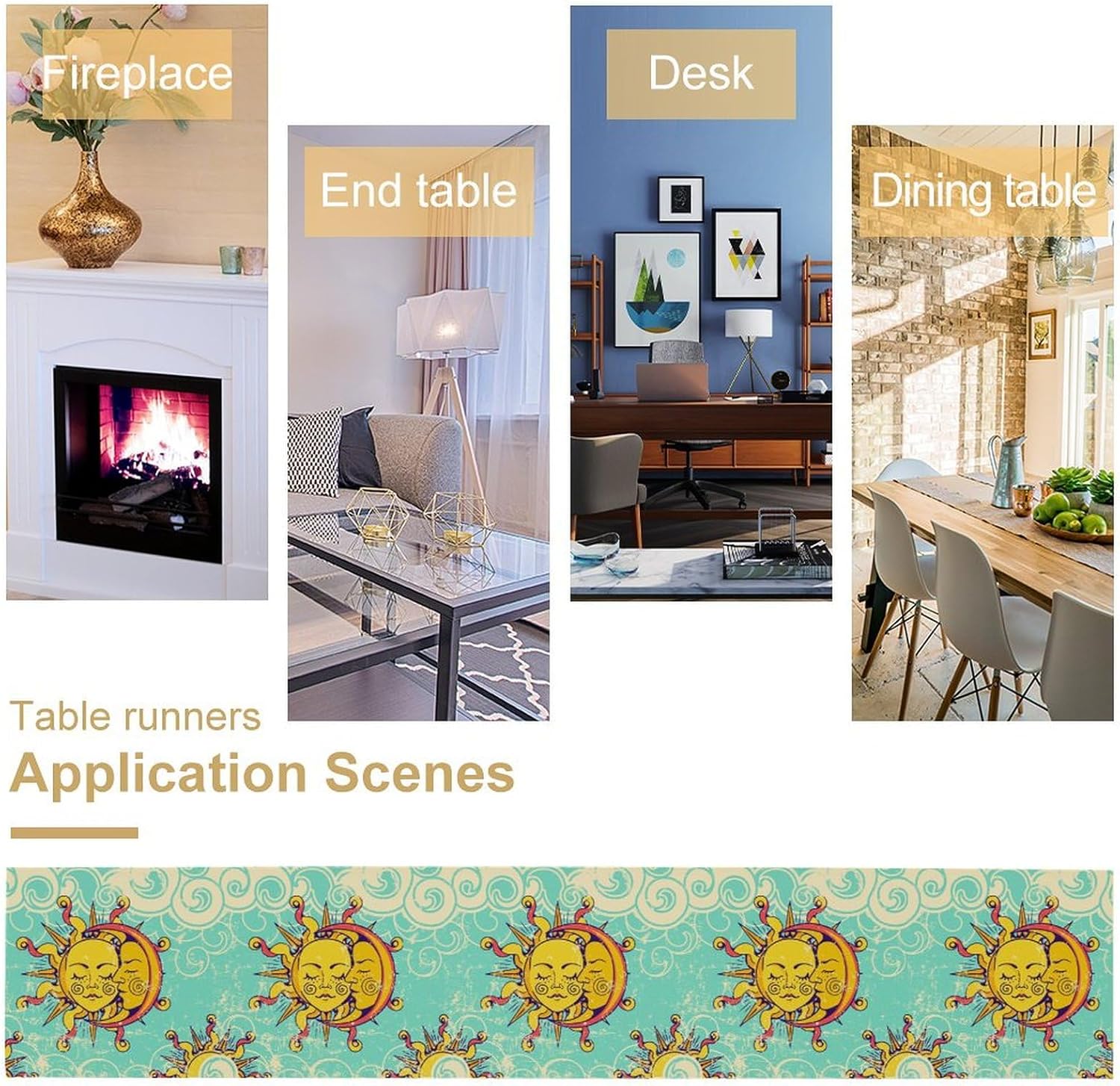 Retro Sun Moon Table Runner, Phase of The Moon Vintage Cloud Table Runner for Kitchen Dinner Living Room Table Runner Yellow Floral, 13x70 Inch Yellow Blue