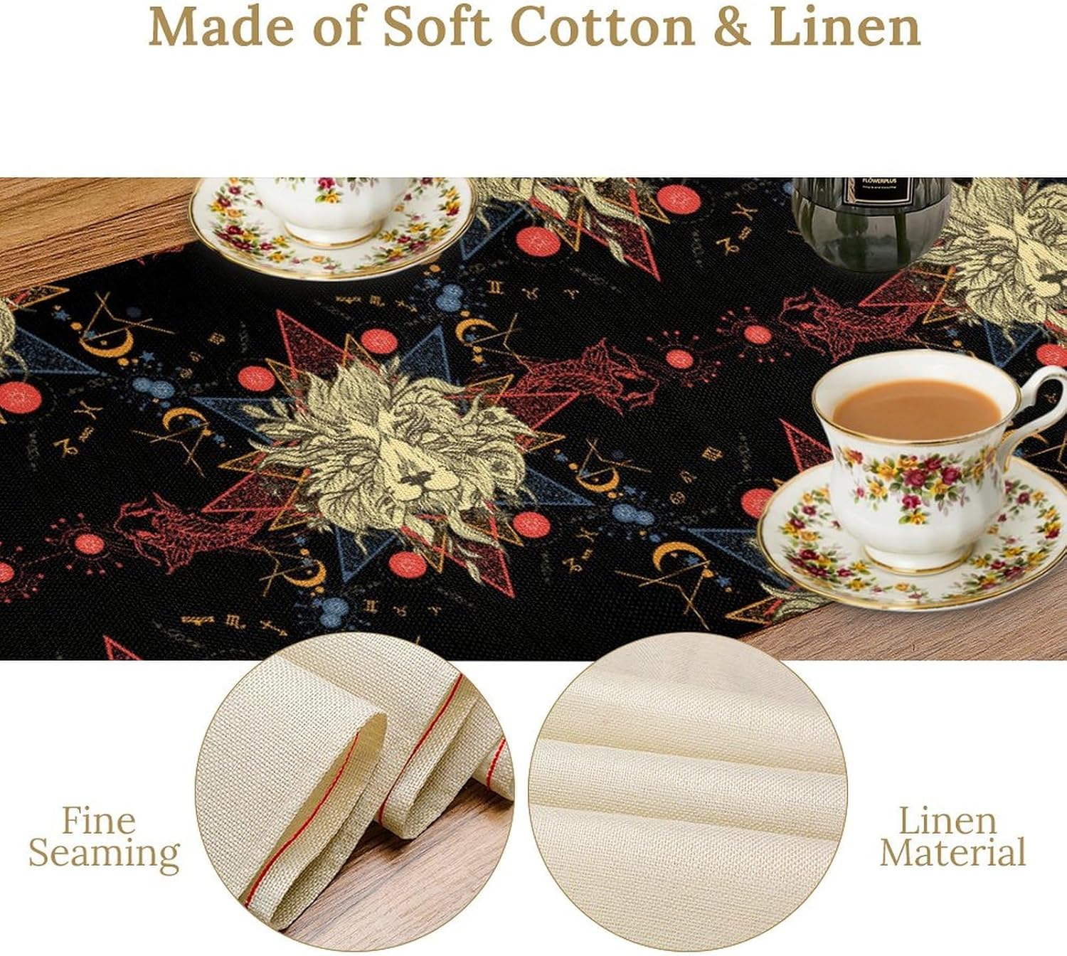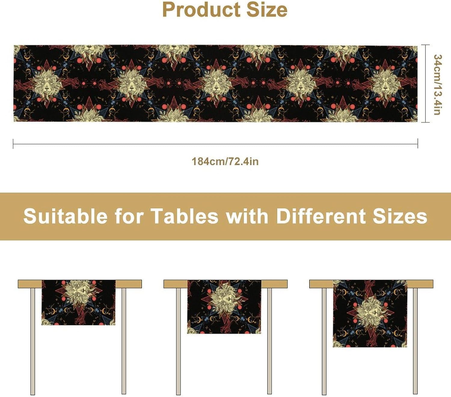 Boho Moon Lion Table Runner, Chinese Fish Phase of The Moon Sun Moon Table Runner for Kitchen Dining Table Home Party,13x60 Inch Black Red