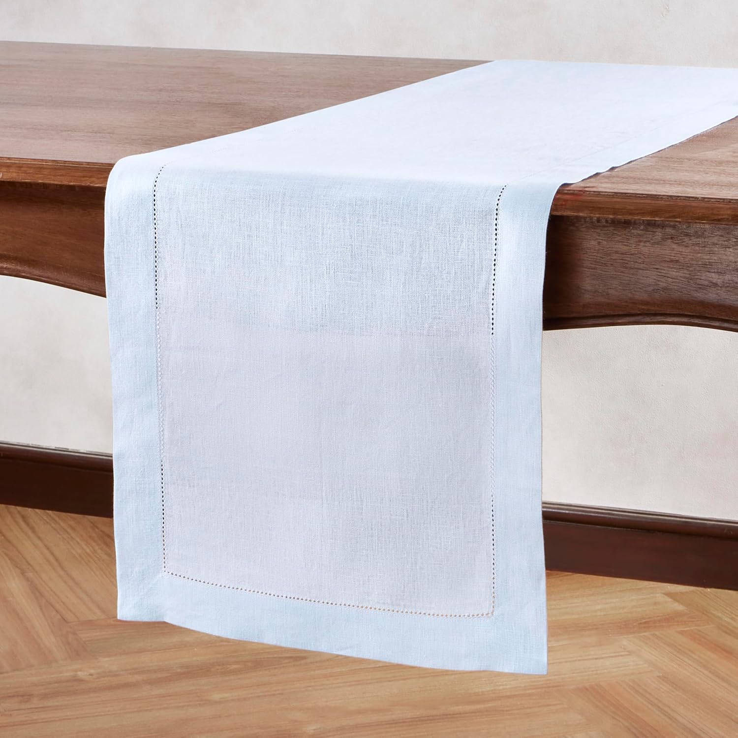 Linen Table Runner 90 inches Long – Hemstitch 100% Pure Linen Light Blue Dining Table Runner 14 x 90 Inch for Spring, Summer, Wedding Decorations, Gift – Elara