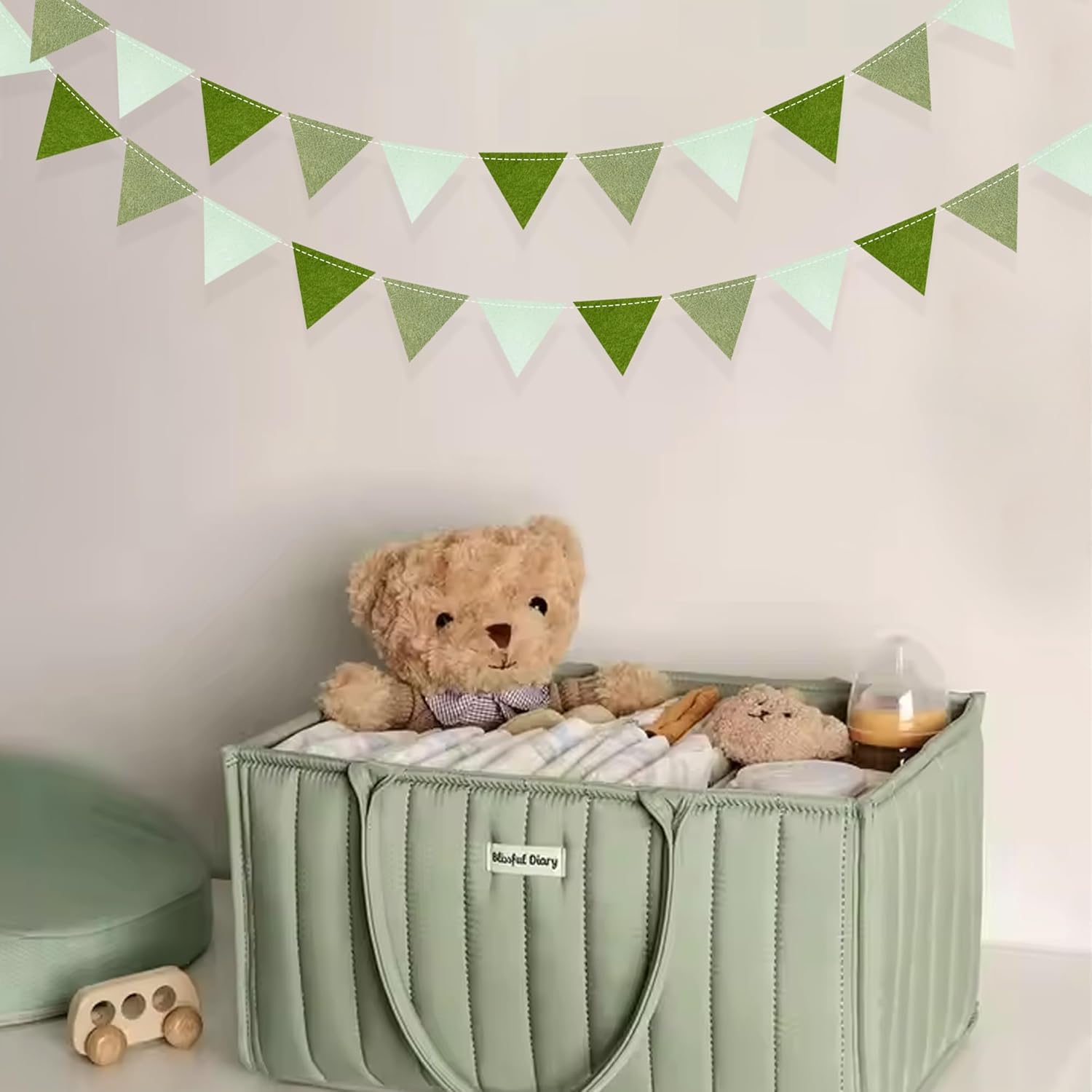 Olive Green Party Decorations Gradient Sage Green Felt Hanging Triangle Mini Bunting Pennant Banner Flag for Neutral Baby Shower Birthday Wedding Woodland Safari Jungle Party Classroom Nursery Decor