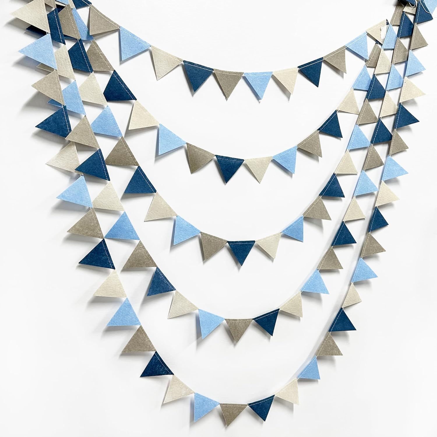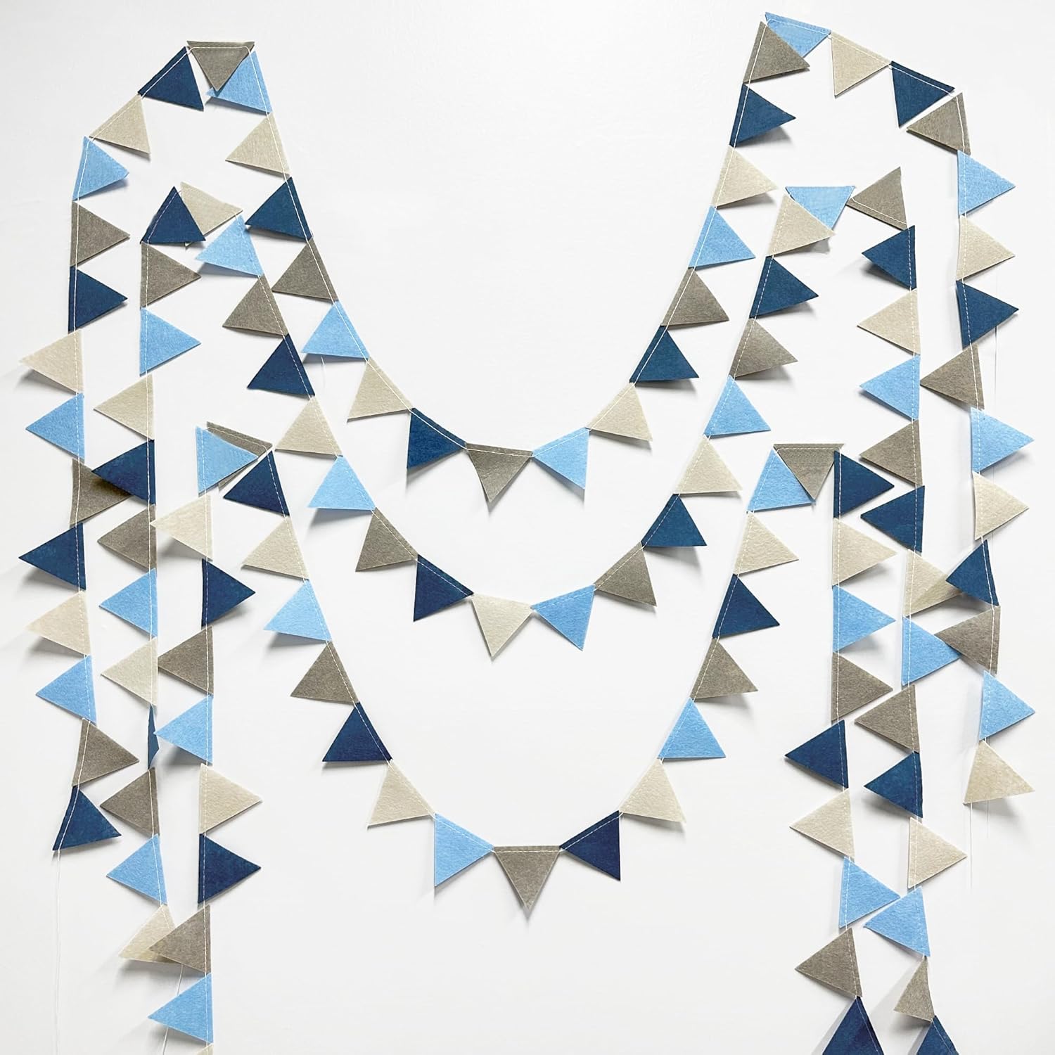 Dusty Blue Party Decoration Gray Blue Felt Hanging Triangle Mini Bunting Pennant Banner Flag for Baby Shower Birthday Wedding Nautical Ahoy Achor Bridal Shower Engagement Party Classroom Nursery Decor